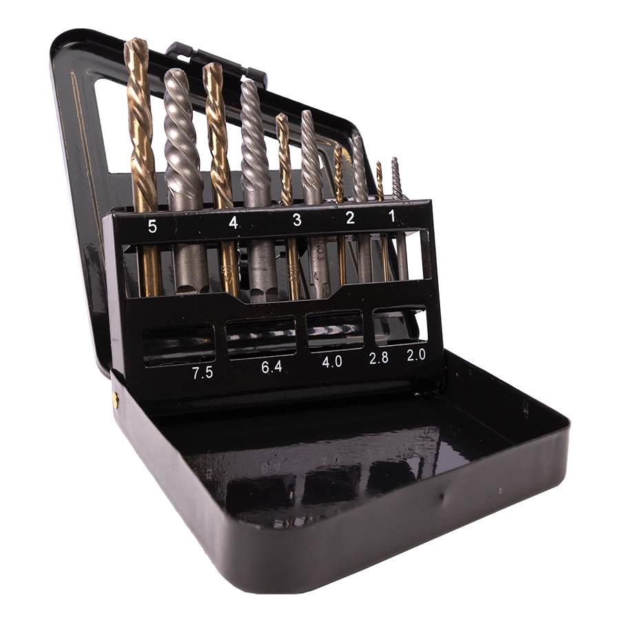Набор экстракторов и сверел, 10 предм. Сверла: 5/64", 7/64", 5/32", 1/4", 19/64" Экстракторы: 5/64", 7/64", 5/32". 1/4",19/64"