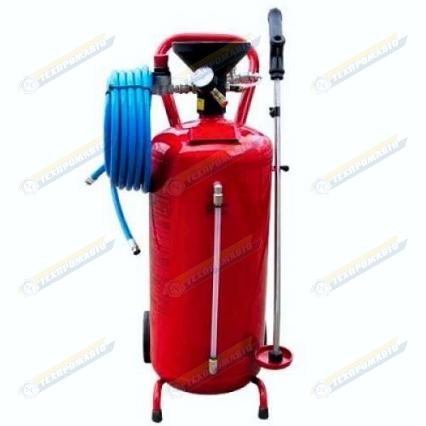 Работает от сжатого воздуха и подключается к пневмосети (к компрессору от 4 до 8 атм.). Благодаря тонкой и длинной трубке пенообразующего пистолета, он позволяет наносить моющие и дезинфицирующие растворы в виде пены на любые поверхности, в том числе и на труднодоступные участки.