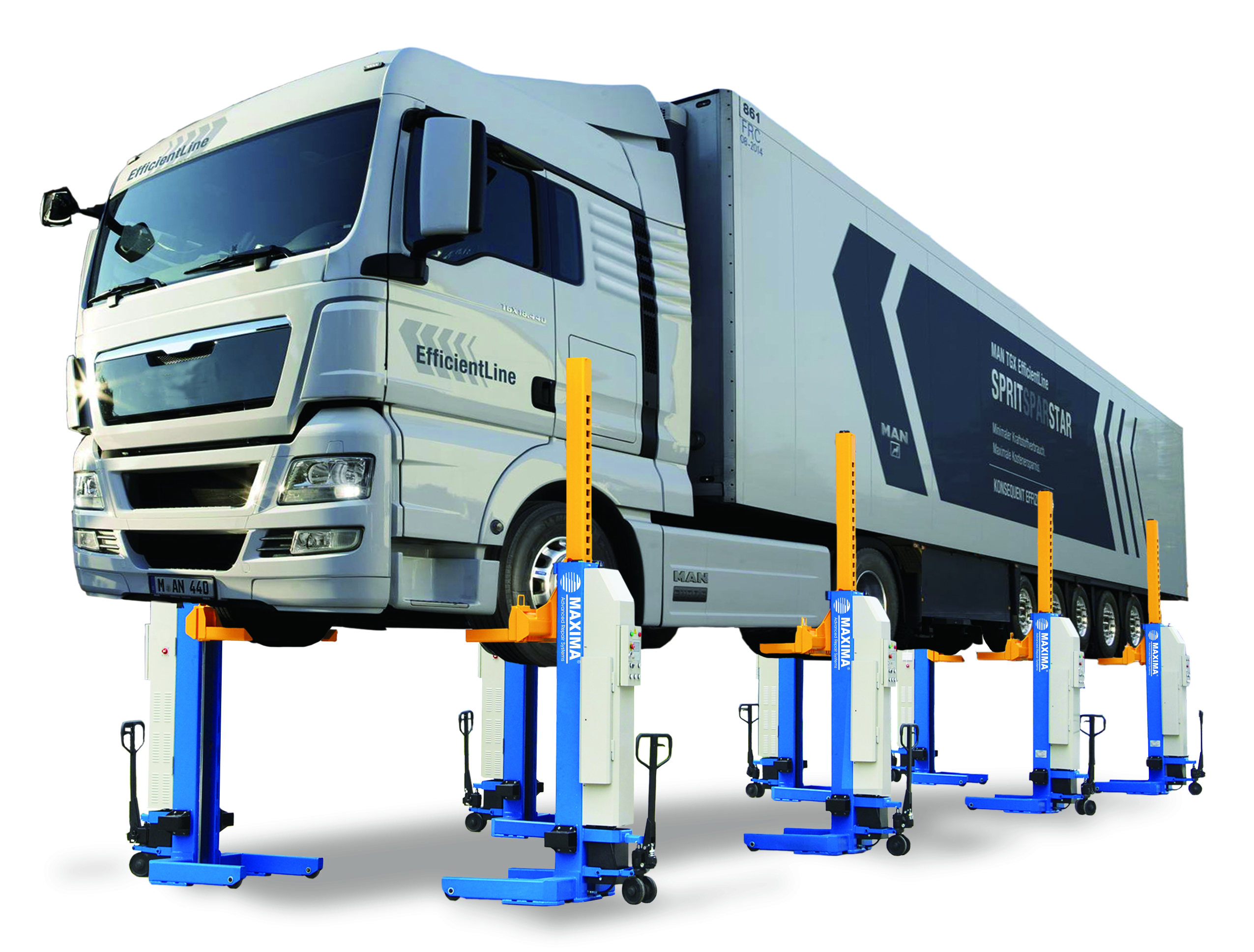 - Подкатные подъёмные колонны с беспроводной связью для грузовых автомобилей и автобусов.