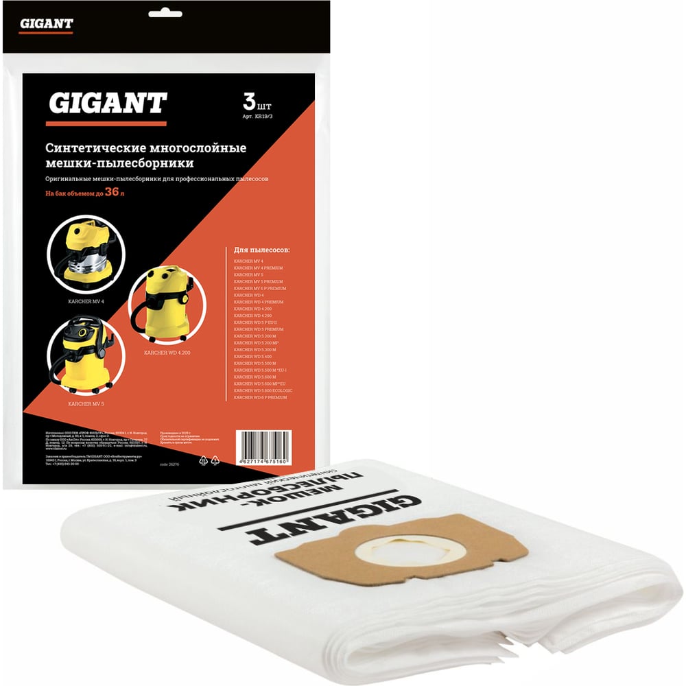Фильтр-мешки 3 шт для пылесоса KARCHER MV 4, MV 5, MV 6, WD 4, WD 5, WD 6 Gigant KR19/3