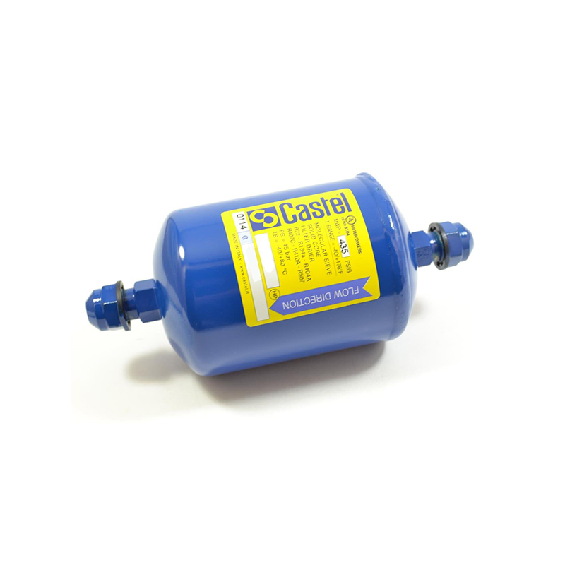 Фильтр-осушитель Castel DF330/4 предназначен для фильтрации от механических примесей и удаления влаги и кислот из фреона станций для заправки кондиционеров SPIN Astrabus 134, Astrabus Evolution, Astrabus Multigas, Astrabus Advance 134, Astrabus Advance Multigas. Резьба внешняя 1/2" SAE - внешняя 1/2" SAE. Используется с фреонами R22, R32, R134a, R404A, R407C, R410A, R507 и R290