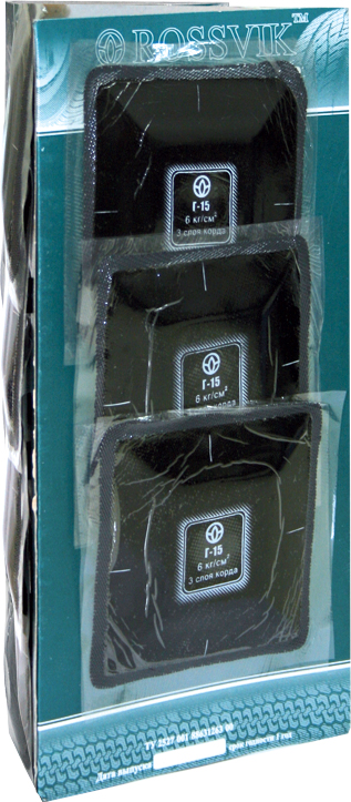 ROSSVIK Г-15-2К – грибки кордовые с проволочной ножкой, которая покрыта адгезивом, размер 15х100 мм. Применяются для ремонта всех типов бескамерных шин с рабочим давлением до 6 Атм.