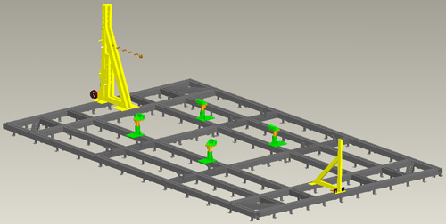 Cтенд состоит из монтируемой в пол стапельной рамы G7 размерами 4,5 х 7,0м предназначенной для восстановления геометрии всех типов автомобилей, и комплектами D 100 (приобретается дополнительно) или D 300 (приобретается дополнительно) , состоящим из силовых башен- 10 тн., векторными выпрямителями, креплениями для фиксации автомобиля, набором зажимов и дополнительных аксессуаров. Это наиболее универсальные из всех существующих на сегодняшний день стендов для ремонта автомобилей. Конструкция стендов позволяет прикладывать к автомобилю несколько векторов одновременно. Усилие - тянущее и толкающее, поэтому можно совмещать и строить из них самые разнообразные комбинации силовых векторов. Монтируемая в пол рама совершенно не занимает места в цеху. Модули нескольких рам можно присоединять друг к другу, что даст возможность производить ремонт длиннобазного транспорта. Напольные стенды для правки кузовов автомобилей G7 созданы для максимального сокращения времени и повышения качества ремонта.
