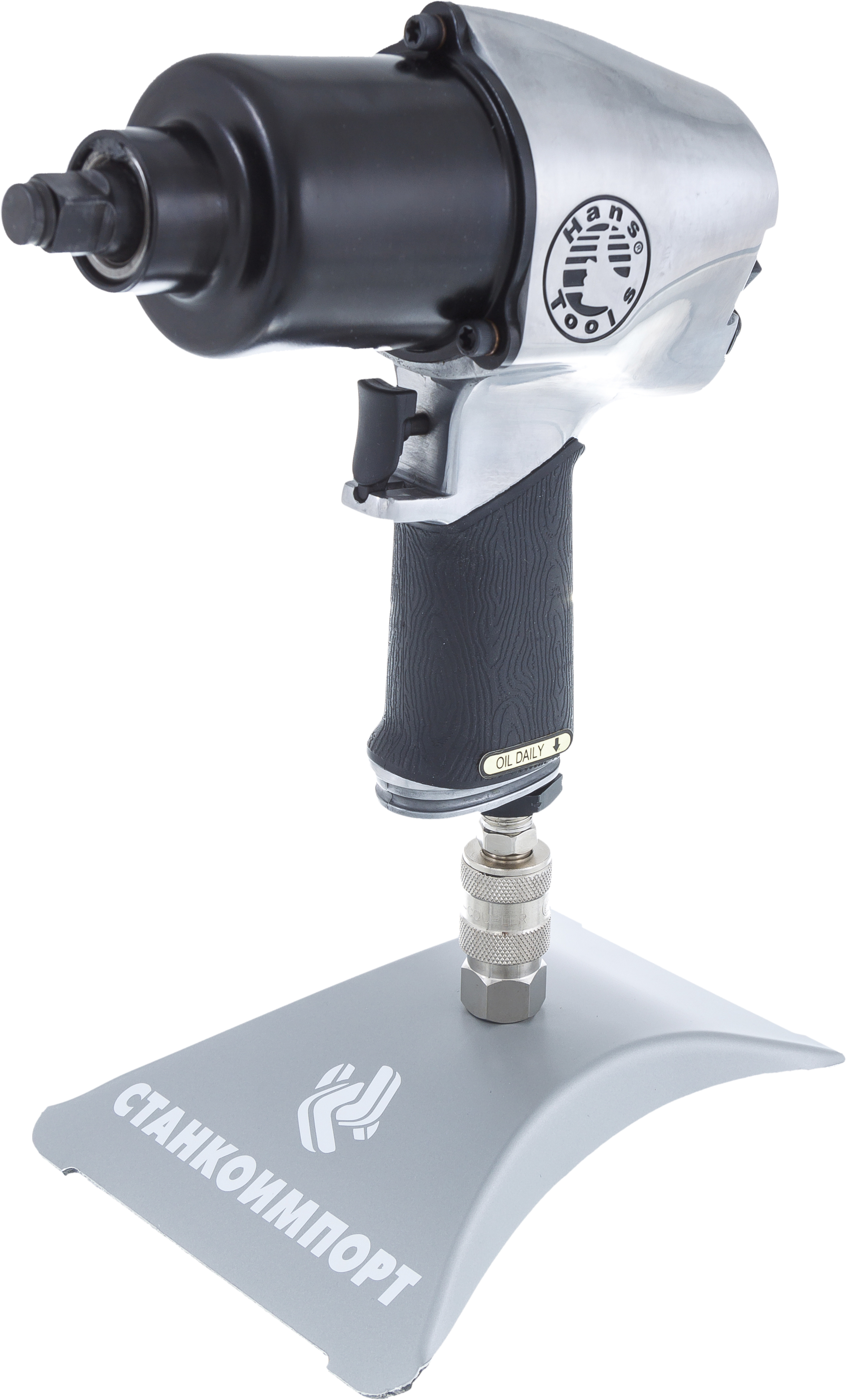 Расход воздуха 120 л/мин Максимальное усилие затягивания 814 Нм Длина 7.6''-193 мм Вес нетто 2.6 кг Скорость вращения 7000 об/мин Давление воздуха 6.2 бар Диаметр воздушного шланга ID.3/8''-9.5 мм Отвод отработанного воздуха через рукоятку с глушителем Диаметр входного штуцера 1/4''-6.35 мм Тип ударного механизма с двумя молотками Пневмогайковерт Hans 84110 – это инструмент, предназначенный в первую очередь для работы в тяжелых условиях и под интенсивной нагрузкой. Обновленная модель совмещает в себе компактные размеры, выверенную удачную конструкцию и крайне прочный металлический корпус с большим ресурсом работы и достаточной мощностью. Механизм Twin Hammer с двумя одинаковыми молотами обеспечивает мгновенный сбалансированный "удар" и высочайший крутящий момент на старте, высокие характеристики прочности ударного механизма делают механизм незаменимым в автомобильной индустрии, предназначен для работы в тяжелом режиме, несложный механизм облегчает эксплуатацию инструментов Hans 84110 – выносливая и прочная модель от Hans. Этот пневматический гайковерт можно рекомендовать к использованию не только на СТО и шиномонтажных постах(для грузовоых лучше подойдет гайковерт пневматический ударный 1"), но и на производстве. Однако надежность и прочность имеют обратную сторону в виде лишнего веса, который у 84110 составляет 2,6 кг, хотя максимальное рабочее усилие 542Нм (не стоит путать с пиковым, которое указывают различные производители, у данного гайковерта достигает 759Нм) позволяет смириться с гайковертом весящим более 2 кг. С пневмогайковертом необходимо использовать только торцевые головки и аксессуары ударного типа. Они меньше изнашивают крепеж и посадочный квадрат гайковерта, а также более устойчивы к импульсным нагрузкам, получаемым от привода гайковерта. Как правило, ударные головки и сопутствующие приспособления типа карданов и удлинителей изготавливают из хромомолибденового сплава и покрывают черным фосфатным покрытием. Особенности подготовки воздуха Для всех пневмогайковертов Hans величина потребления воздуха, необходимая для работы инструмента на полную мощность, обычно указана «с запасом». У 84110 потребление воздуха находится на уровне 114 л/мин. Исходя из этого, минимальные рекомендуемые модели компрессоров такие: •220 В — FIAC СБ4/С-100.АВ360 А; •380 В - FIAC СБ4/С-200 АВ515. В связи с тем, что обычный воздух имеющий определенную влажность, к тому же загрязненный «смесью» из компрессорного масла и влаги, конденсируемой в рессивере компрессора, способен навредить двигателю любого пневмоинструмента, то перед попаданием в инструмент ему требуется осушение и очистка. Для этой цели применяют оборудование для подготовки воздуха: специальные фильтры-осушители для компрессора очищающие воздух от влаги и других примесей, а также лубрикаторы для пневматического инструмента, обогащающие воздушный поток маслом. Оба этих приспособления часто выпускаются в виде единого изделия – модульной группы для пневмолинии. Рекомендованные модели …
