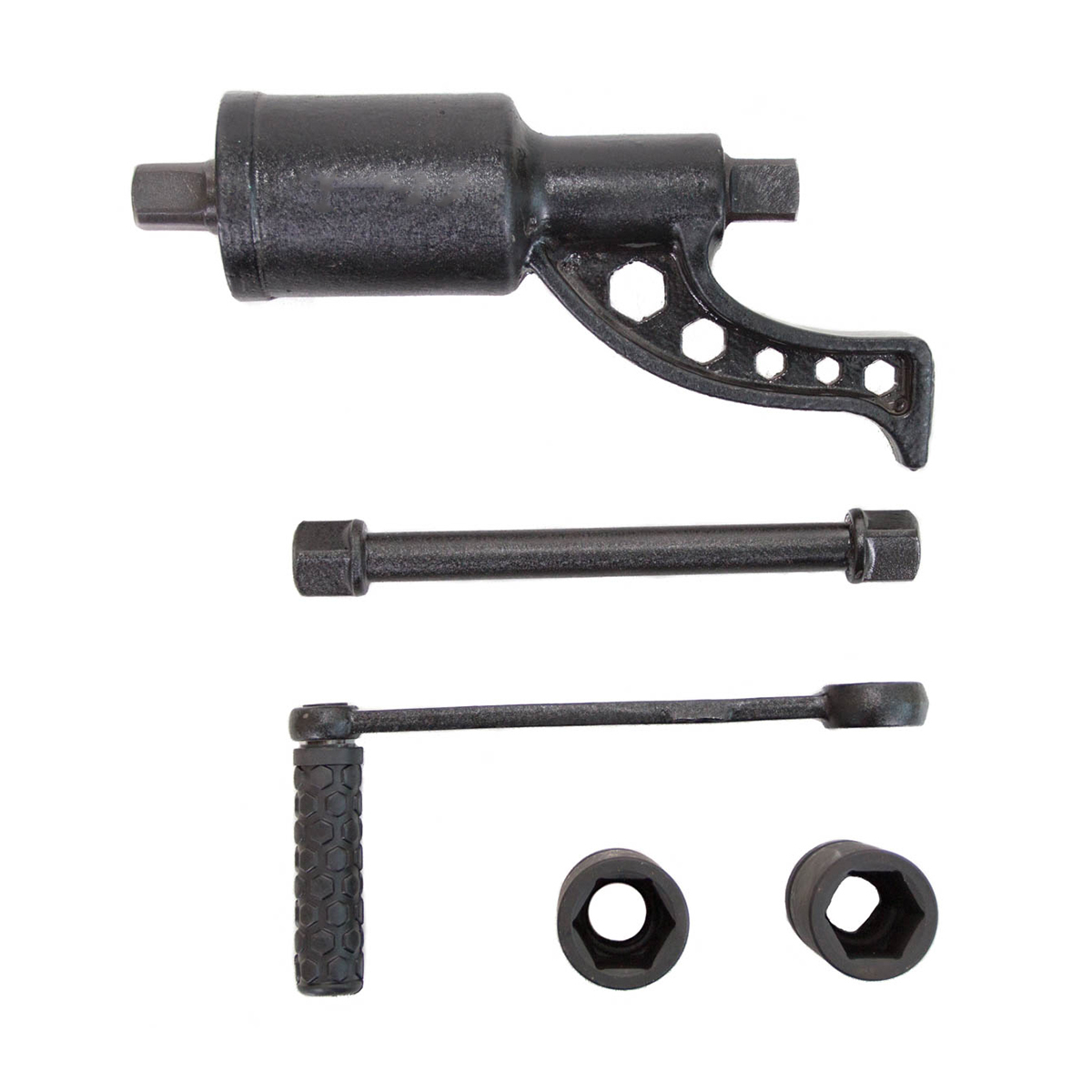 Ручной гайковерт механический с редуктором предназначен для снятия и установки колес грузовых автомобилей, а также для выполнения работ с крепежными соединениями, требующими применений больших усилий. Конструктивно гайковёрт представляет собой редуктор с большим (1 : 68) передаточным числом, который позволяет сорвать прикипевшую гайку или болт. В последнее время инструмент очень активно используется в малоэтажном строительстве при закручивании винтовых свай малых и средних диаметров. При подготовке свайных полей винтовых фундаментов. Характеристики: передаточное число - 1:68; мах усилие - 4800 Нм; посадочные квадраты 1". Комплектация: 2 головки 32 мм и 33 мм Внимание! Категорически запрещается использовать дополнительные удлинители для ручки-воротка, а также использовать ударные гайковерты в качестве привода. Это приведёт к поломке ручного гайковерта, а также к отказу производителя от гарантийных обязательств.