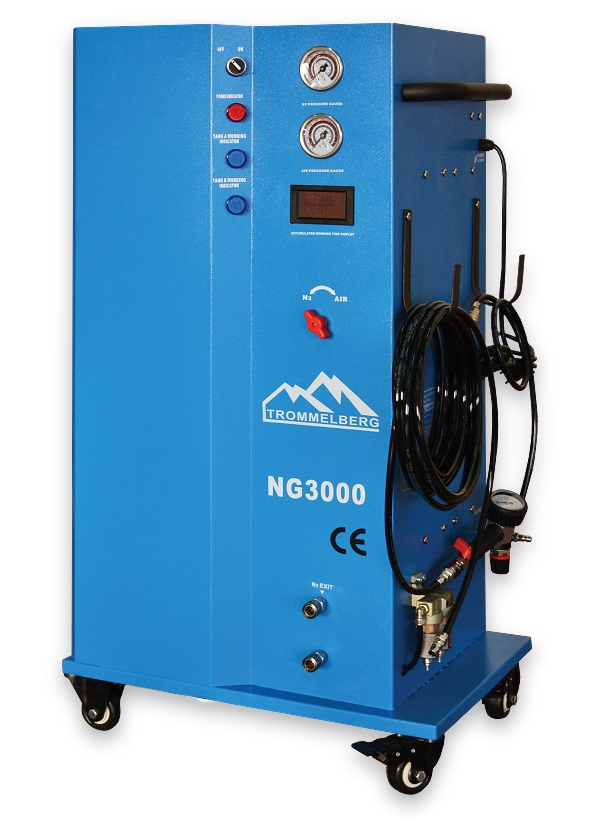Trommelberg NG3000 - это мобильная и компактная установка адсорбционного типа для накачки шин очищенным азотом, который получается путем очистки и обогащения сжатого воздуха с использованием специального фильтра.