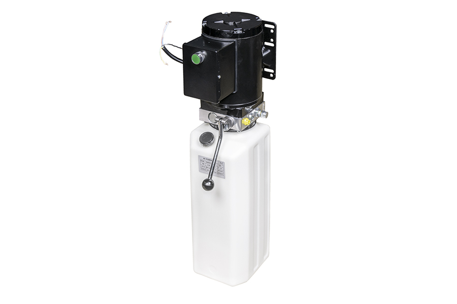 Электрогидравлическая станция. Служит для управления функциями подъема и опускания (поставляется в сборе). Станция состоит из следующих комплектующих: Электродвигатель 380В, 2,2кВт, 2800 об/мин. Седло блока клапанов; Шестеренчатый насос высокого давления; Бак (резервуар) для гидравлической жидкости, объем 10л
