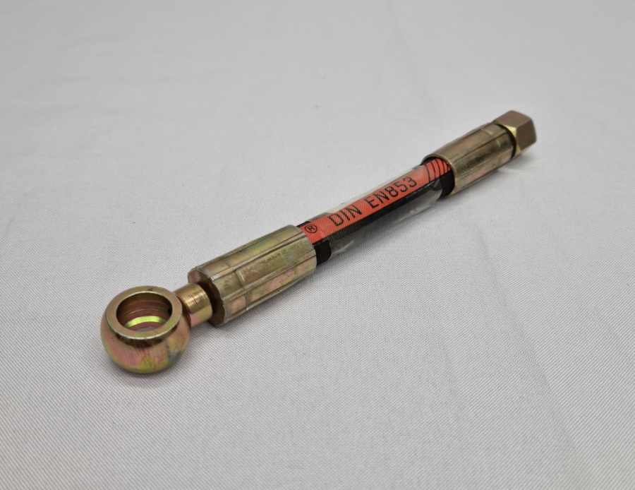 Гидравлический рукав с фитингами, для подключения линии от гидравлической станции к цилиндру. Параметры рукава: размер 5/16'. Длина:180 мм. Рабочее давление: 35Mпа Фитинги: М14х1,5мм., размер ключа 19мм. / поворотное соединение (Банджо) под болт Ø 14мм. Применяемость: Подъемник двухстоечный ПГН2-5.5