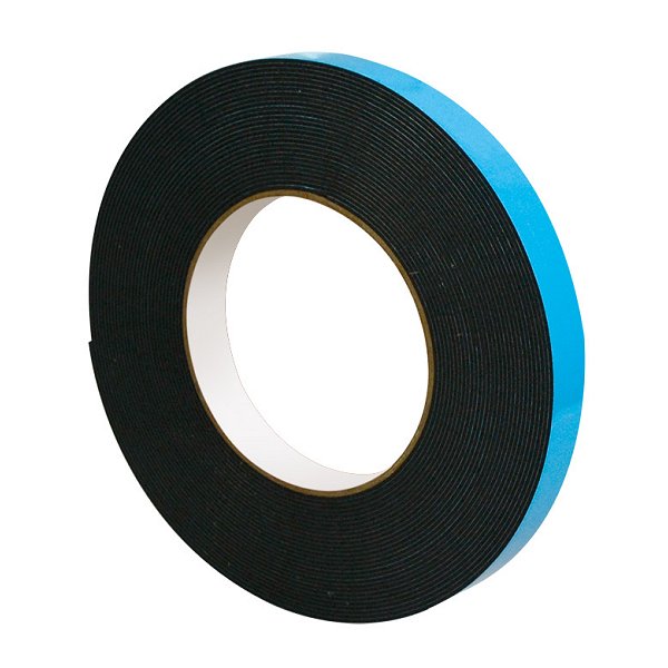 Чёрная монтажная лента с голубым протектором на основе вспененного полиэтилена с двусторонним клеевым слоем высокой адгезии.