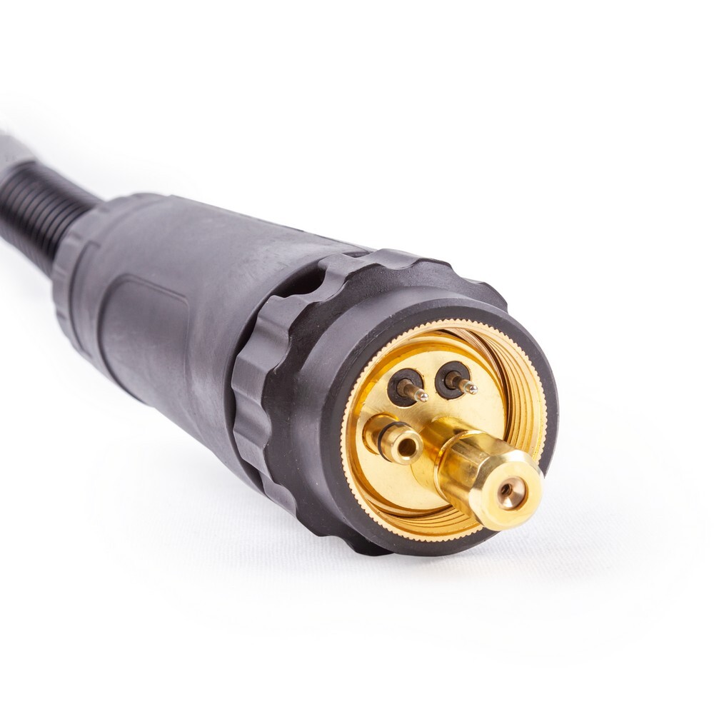Сварочная горелка VARTEG MIG-25 5м предназначена для сварки MIG/MAG при подключении к аппаратам полуавтоматической сварки для выполнения различного вида сварочных работ. Удобная рукоятка с кнопкой управления сварочным процессом и эргономичный дизайн горелки обеспечивают максимальный комфорт во время работы. Шарнирное соединение рукоятки и рукава снижает нагрузку на кисть и запястье.ШАРНИРНОЕ СОЕДИНЕНИЕ: Шарнир между рукояткой горелки и рукавом уменьшает нагрузку на руку и запястье, что даёт мобильность, гибкость, удобство вращения, и делает процесс сварки более удобным.ЭРГОНОМИЧНОСТЬ: Эргономичная рукоятка горелки хорошо лежит в руке, а кнопка управления сваркой добавляет функциональности, удобства во время сварочного процесса и простоты обслуживания на месте проведения работ.ПРЕИМУЩЕСТВА:Воздушное охлаждениеШарнирное соединение рукоятки и рукаваУправление кнопкой на рукояткеЕвро разъёмФУНКЦИОНАЛЬНЫЕ ОСОБЕННОСТИ:ЕВРО-РАЗЪЁМ: Стандартный евро-разъём горелки даёт возможность подключения к большинству современных сварочных полуавтоматов.КОМПЛЕКТАЦИЯ: Горелка VARTEG MIG-25 5м - 1 шт.; Гусак угол изгиба 45°, длина 145 мм - 1 шт.; Канал направляющий стальной, красный - 1 шт.; Сопло коническое (MIG-25) - 1 шт.; Медный наконечник M6 x 28 х 1,0 - 1 шт.; Диффузор газовый (MIG-25) - 1 шт.; Держатель наконечника M6 (MIG-25) - 1 шт.*Производитель оставляет за собой право вносить изменения в комплектацию оборудования без предварительного уведомления покупателя.