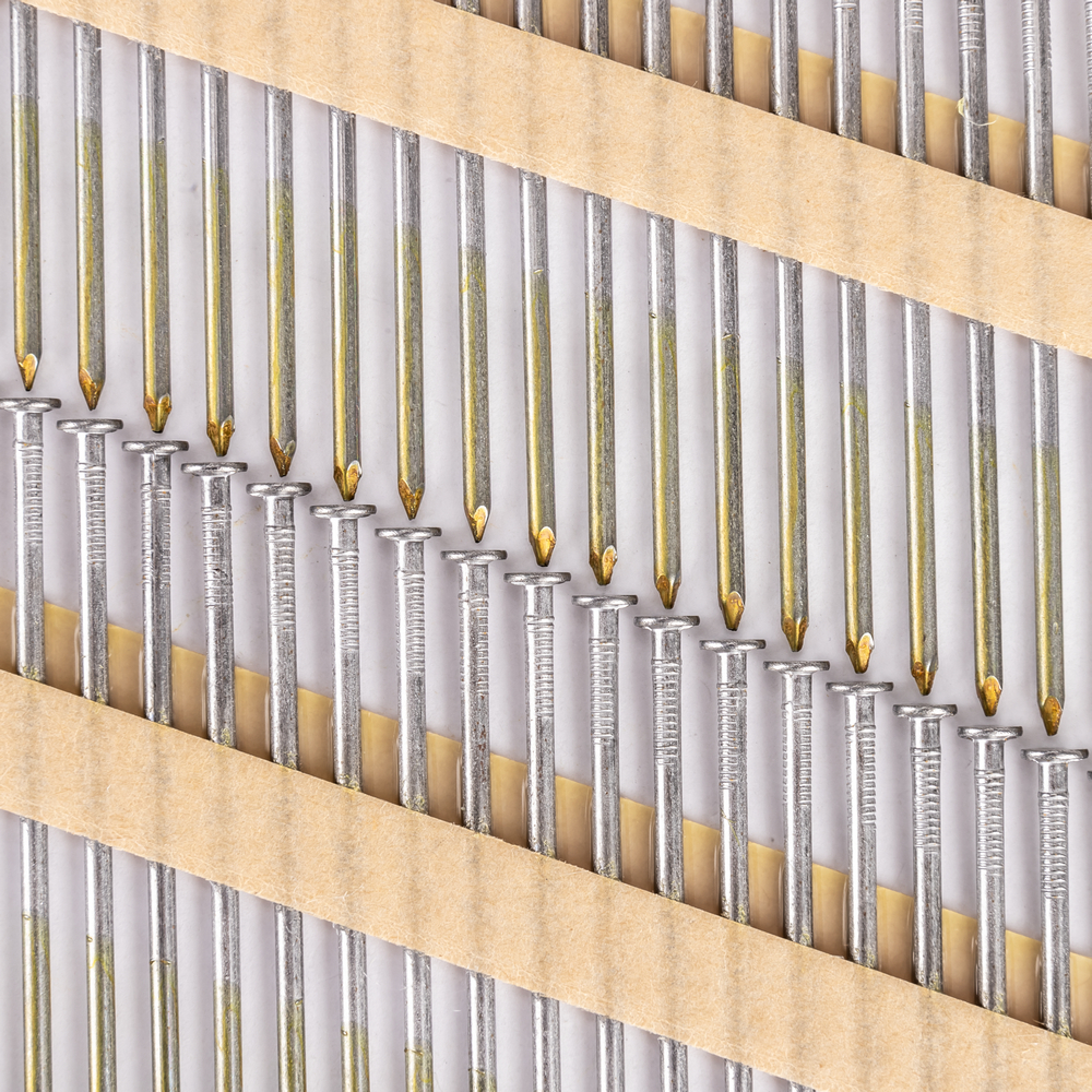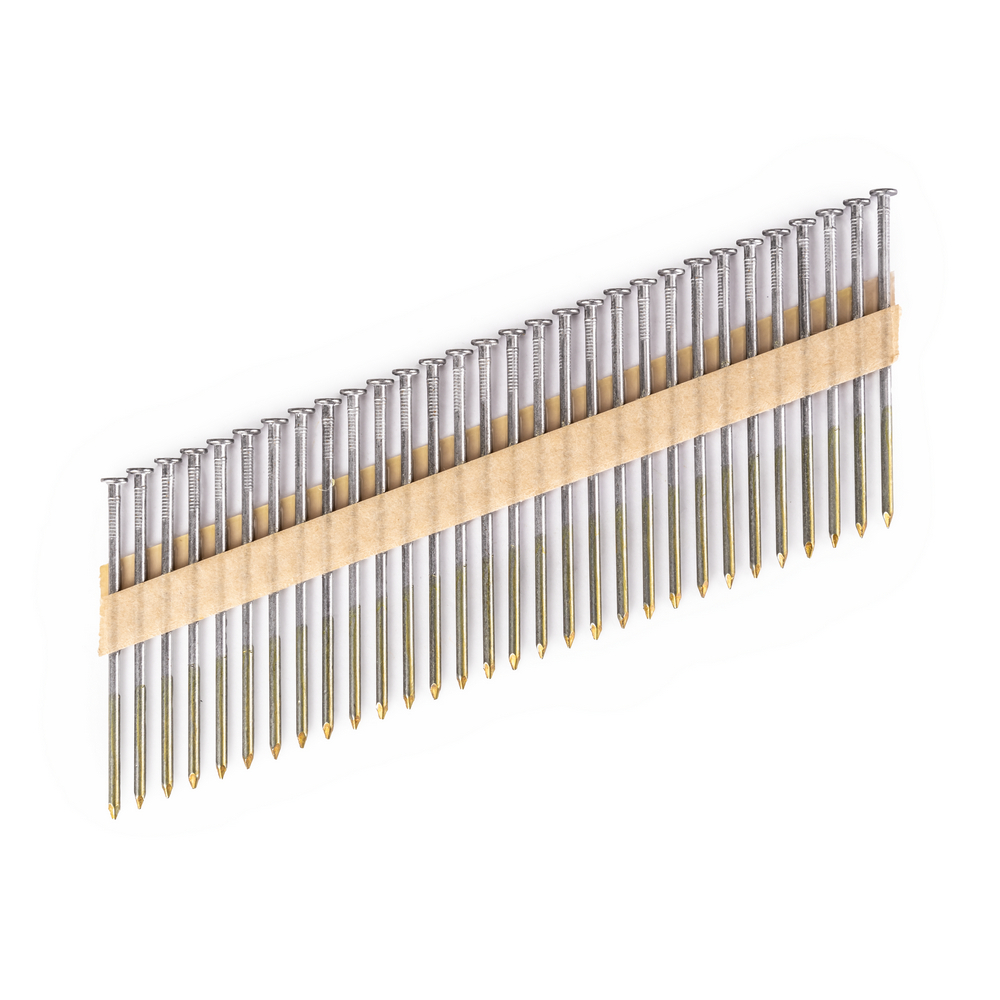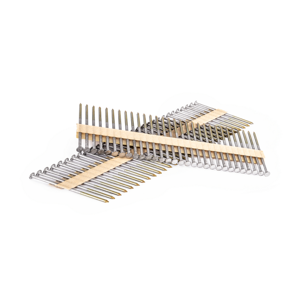 Реечные гвозди применяются для автоматизированного скрепления деревянных конструкций, где требуется высокая прочность соединения деталей. Предназначены для общих строительных работ, включая облицовку и отделку. Тип гвоздей - P0A GL; Оснастка - С9021; Угол наклона гвоздя - 21 градус; Cечение - 2,8 мм; Длина - 80 мм. Крепеж забивается с помощью нейлера или пневматического гвоздезабивного пистолета FoxWeld AERO C9021 благодаря чему время на монтаж деревянных конструкций сокращается более чем в 3 раза. Гвозди выполнены из стали с цинковым покрытием что обеспечивает защиту от коррозии. Комплект поставки состоит из упаковки включающей 5 планок по 30 шт. (150 шт.).