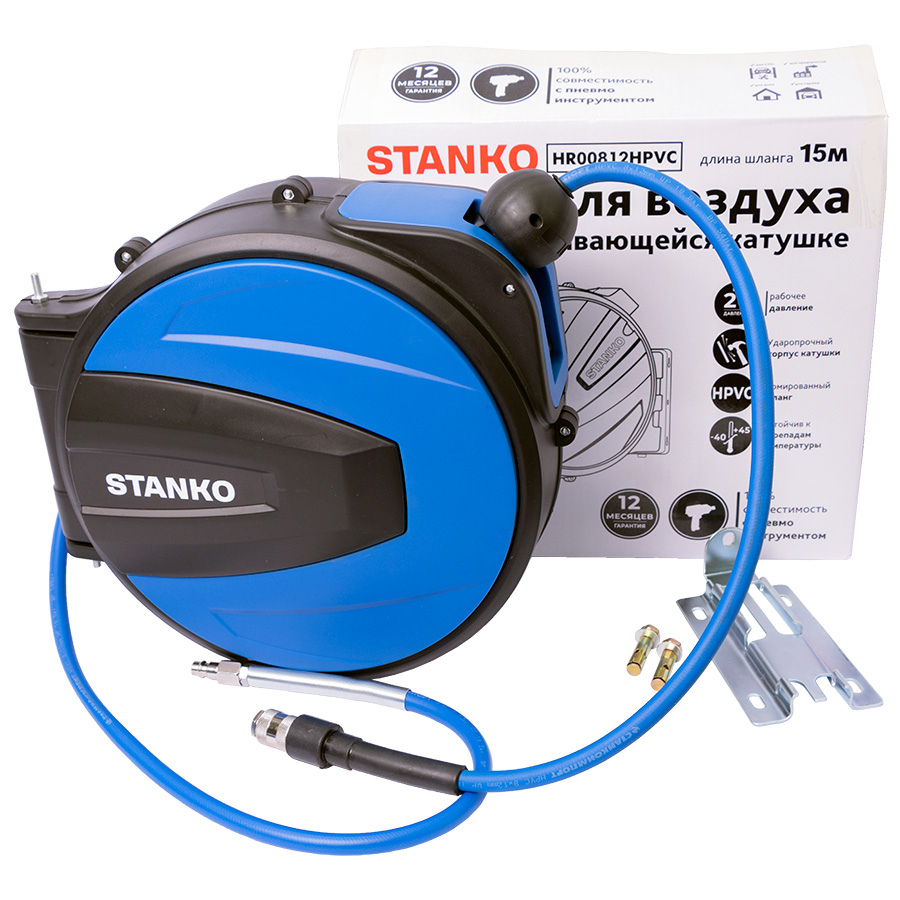 body{margin:0;padding:8px;} p{line-height:1.15;margin:0;white-space:pre-wrap;} ol,ul{margin-top:0;margin-bottom:0;} img{border:none;} li>p{display:inline;} table.blueTable {width: 100%; text-align: center; border-collapse: collapse;} table.blueTable td, table.blueTable th {border: 0px solid #AAAAAA; padding: 1px 1px;} table.blueTable tbody td { font-size: 13px;} table.blueTable thead {background: #EEEEEE;background: -moz-linear-gradient(top, #EEEEEE 0%, #cecece 66%, #EEEEEE 100%);background: -webkit-linear-gradient(top, #EEEEEE 0%, #cecece 66%, #C9C9C9 100%); background: linear-gradient(to bottom, #EEEEEE 0%, #EEEEEE 66%, #EEEEEE 100%);} table.blueTable thead th { font-size: 12px;font-weight: normal;color: #000000; text-align: center;border-left: 1px solid #EEEEEE;} table.blueTable thead th:first-child { border-left: none;} table.blueTable tfoot td {font-size: 12px;} table.blueTable2 {background-color: #FFFFFF; width: 100%;text-align: left;border-collapse: collapse;} table.blueTable2 td, table.blueTable th { border: 0px solid #AAAAAA;padding: 3px 2px;} table.blueTable2 tbody td {font-size: 13px;} table.blueTable2 tr:nth-child(odd) { background: #EEEEEE;} table.blueTable2 tfoot td { font-size: 14px;} table.blueTable2 tfoot .links { text-align: right;} table.blueTable2 tfoot .links a{display: inline-block;background: #1C6EA4;color: #FFFFFF;padding: 2px 8px;border-radius: 5px;} Назначение: Шланг с автоматической катушкой подает воздух от компрессора к пневматическому инструменту. Такими шлангами удобно пользоваться как в маленьких мастерских, так и на крупных СТО. Особенности: Корпус катушки изготовлен из ударопрочного пластика. На катушке установлена поворотная штанга для крепления на стену или стойку подъемника. В катушке установлен автоматический фиксатор, срабатывающий через каждый метр шланга. Шланг устойчив к низким температурам. 100% совместимость с пневмоинструментом. Материал шланга: HPVC- Армированный гибридный ПВХ. Подходит для работы при низких температурах (-40°С). Технические характеристики: Материал шланга Армированный гибридный ПВХ Внешний диаметр, мм 12 Внутренний диаметр, мм 8 Длина шланга,м 15 Диапазон рабочих температур, °C -40 +45 Максимальное рабочее давление, бар 20 Тип соединения M1/4 Длина входного шланга, м 1 Упаковка: Длина, мм 520 Ширина, мм 290 Высота, мм 480 Вес, кг 5,5