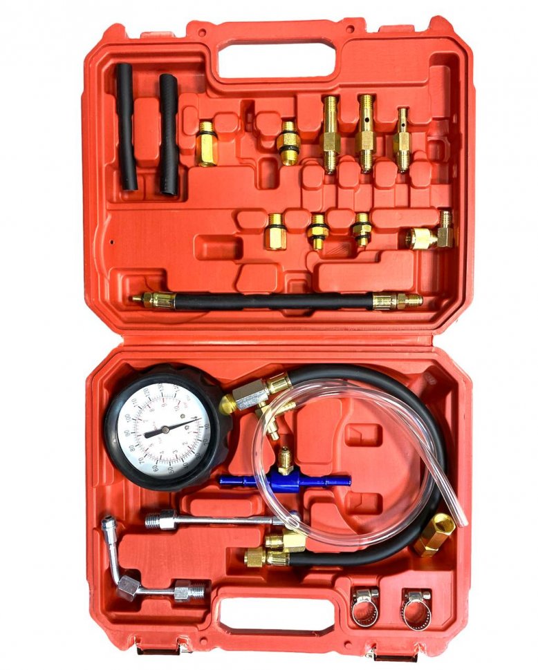 Позволяет производить измерение давление топлива в отечественных автомобилях (ВАЗ, ГАЗ, УАЗ и т.д.), а также в иностранных автомобилях с системами впрыска Bosch, AFC, MPC европейского, японского, корейского производства, а также системами впрыска двигателей фирм American Motors, Ford, Chrysler, GM. C помощью прибора можно проводить измерения, подключившись к порту Шредера, мини-порту Шредера, через форсунки, имеющие соединения типа Bendix, или врезавшись в топливную магистраль, используя тройник. Манометр содержит двойную измерительную шкалу: 0 - 145psi и 0 - 1000кПа.