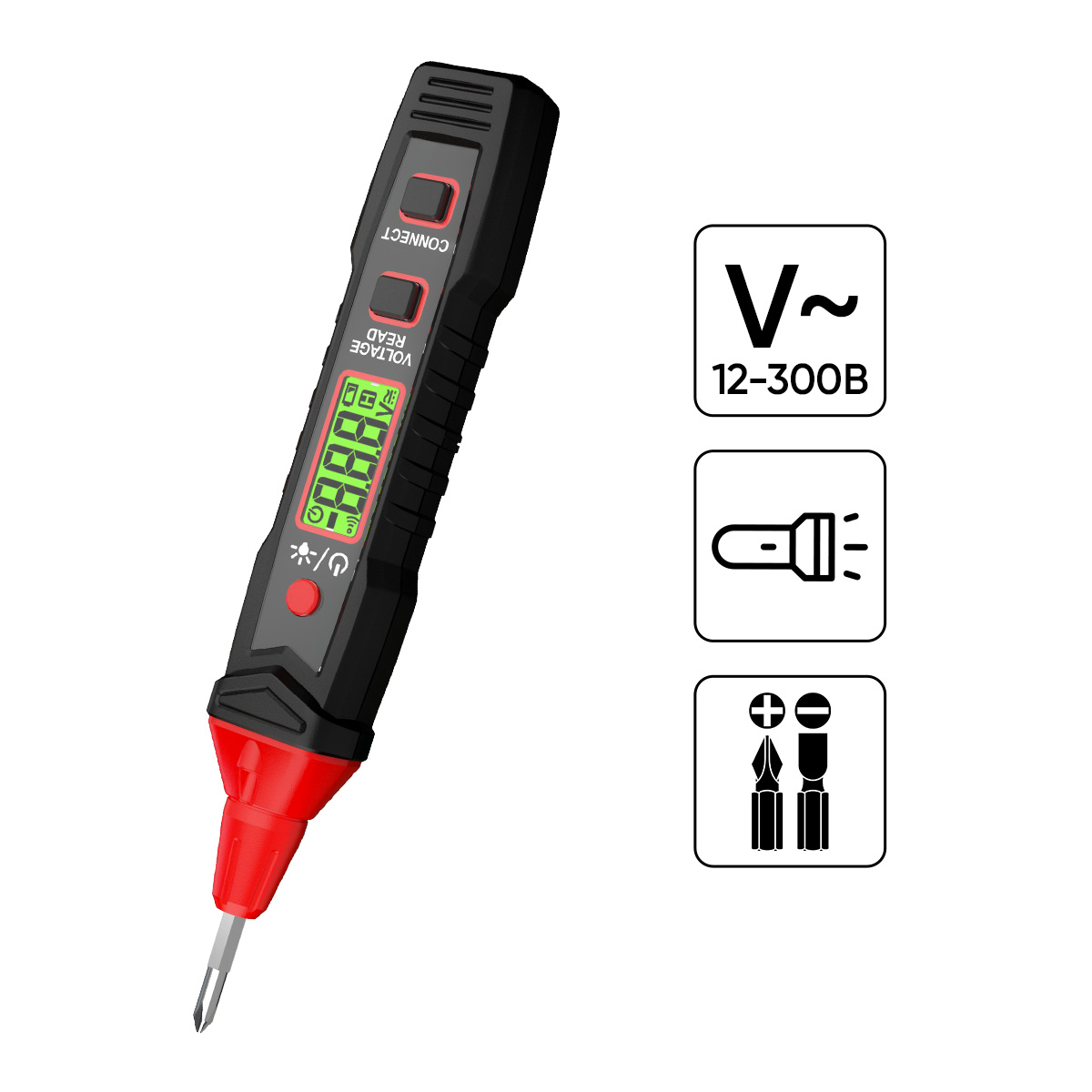 Тестер-индикатор с функцией отвёртки IC-M90 — компактный и универсальный прибор для быстрого и безопасного определения наличия переменного напряжения (AC 12–300 В, 50/60 Гц) в электрических цепях. Подходит для дома, ремонта, обслуживания электрооборудования и профессионального применения. IC-M90 выполняет контактное измерение напряжения, помогает находить фазу и ноль, определять место обрыва проводника, проверять полярность батареек, а также проводить прозвонку цепей. Оснащён ЖК-дисплеем с сигнальной подсветкой и звуковым зуммером, что делает контроль более наглядным и удобным. Сменный двусторонний наконечник (шлицевой SL и крестовой PH) позволяет использовать прибор как универсальную отвёртку для работы с различными типами крепежа. Встроенный LED-фонарик подсветит рабочую зону в условиях слабого освещения. Клипса на корпусе обеспечивает удобное ношение. Ключевые особенности IC-M90 Измерение переменного напряжения AC 12–300 В с погрешностью ±(5%+3) Функции: определение фазы/нуля, прозвонка цепей, поиск обрыва, проверка полярности элементов питания Световая и звуковая индикация уровня напряжения: от зелёного (низкое) до красного (опасное) Автоматическое отключение через 5 минут бездействия Питание от одной батареи AAA, индикатор низкого заряда Преимущества Эргономичный корпус с рельефной поверхностью обеспечивает надёжный хват и удобство при длительной работе Соответствие категории электробезопасности CAT II 300 В гарантирует защиту при эксплуатации в бытовых и профессиональных сетях Красная подсветка дисплея мгновенно предупреждает о наличии опасного напряжения Функция памяти сохраняет два последних измеренных значения для удобного анализа и сравнения IC-M90 сочетает в себе функциональность тестера и удобство отвёртки, что делает его незаменимым помощником для электромонтажных работ, диагностики и мелкого бытового ремонта. Технические характеристики Диапазон напряжения переменного тока (АС): 12-300В Измерение напряжения переменного тока (AC): 12-300 В ± (5%+3) Частота: 50/60 Гц Электробезопасность: CAT II 300 В Материал корпуса: АБС-пластик Дисплей: LED Режим сигнализации: звуковая и световая Индикация интенсивности сигнала: Звуковая: от медленного к быстрому; Световая: от зеленого к красному Подсветка экрана: зеленый - низкое напряжение; : красный - высокое напряжение Отвёртка со сменным наконечником: SL/PH (плоский, крестовой) ?3,5mm Фонарик: + Клипса: + Автоматическое отключение: + Индикатор разрядки батареи: + Высота: <2000 м Рабочая температура и влажность: от 0 до +40 ?С, ? 95% Питание: 1 x 1,5 В, тип ААА Размеры: 170х27х27 мм Вес: 59 г (с элементом питания) Комплектация Тестер индикаторный Сменный отвертка-наконечник (PH/SL) Батарейка 1,5 В тип ААА Инструкция по эксплуатации Упаковка ( картонная коробка)