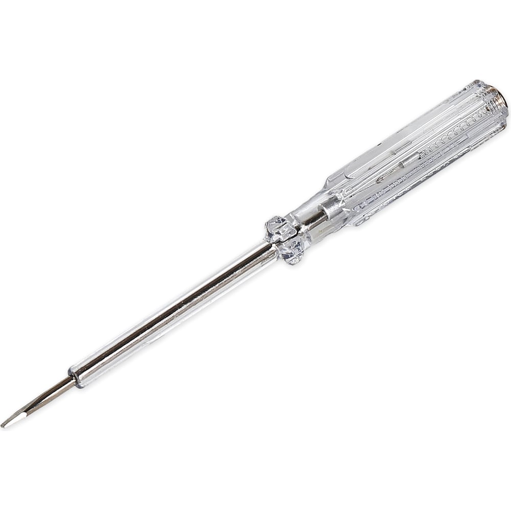 Индикаторная отвёртка 185 мм SHTOK 09051 представляет собой компактное приспособление, которое используется по время проведения электромонтажных работ. Модель оснащается прозрачной ручкой с индикатором внутри, который позволяет определить наличие напряжения на оголенных участках провода или контакта. Параллельный шлиц - SL4. Рабочее напряжение, В: 70-250