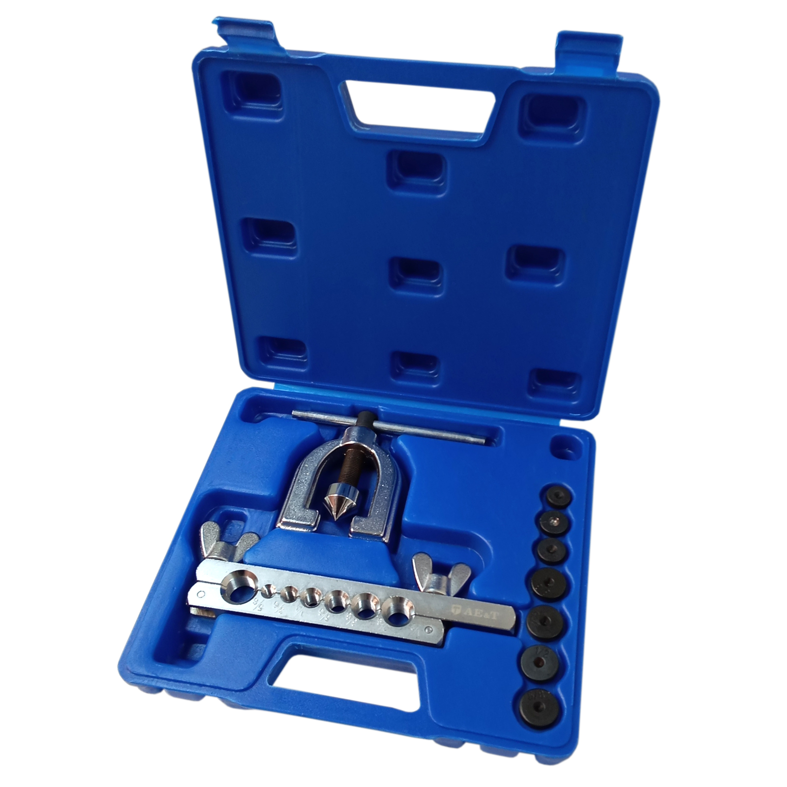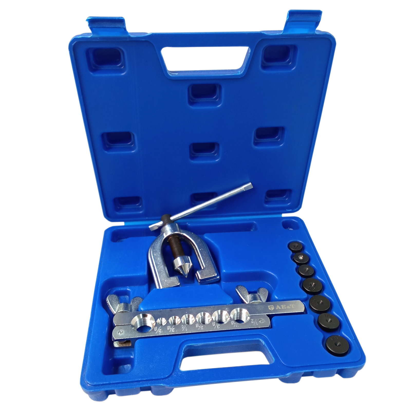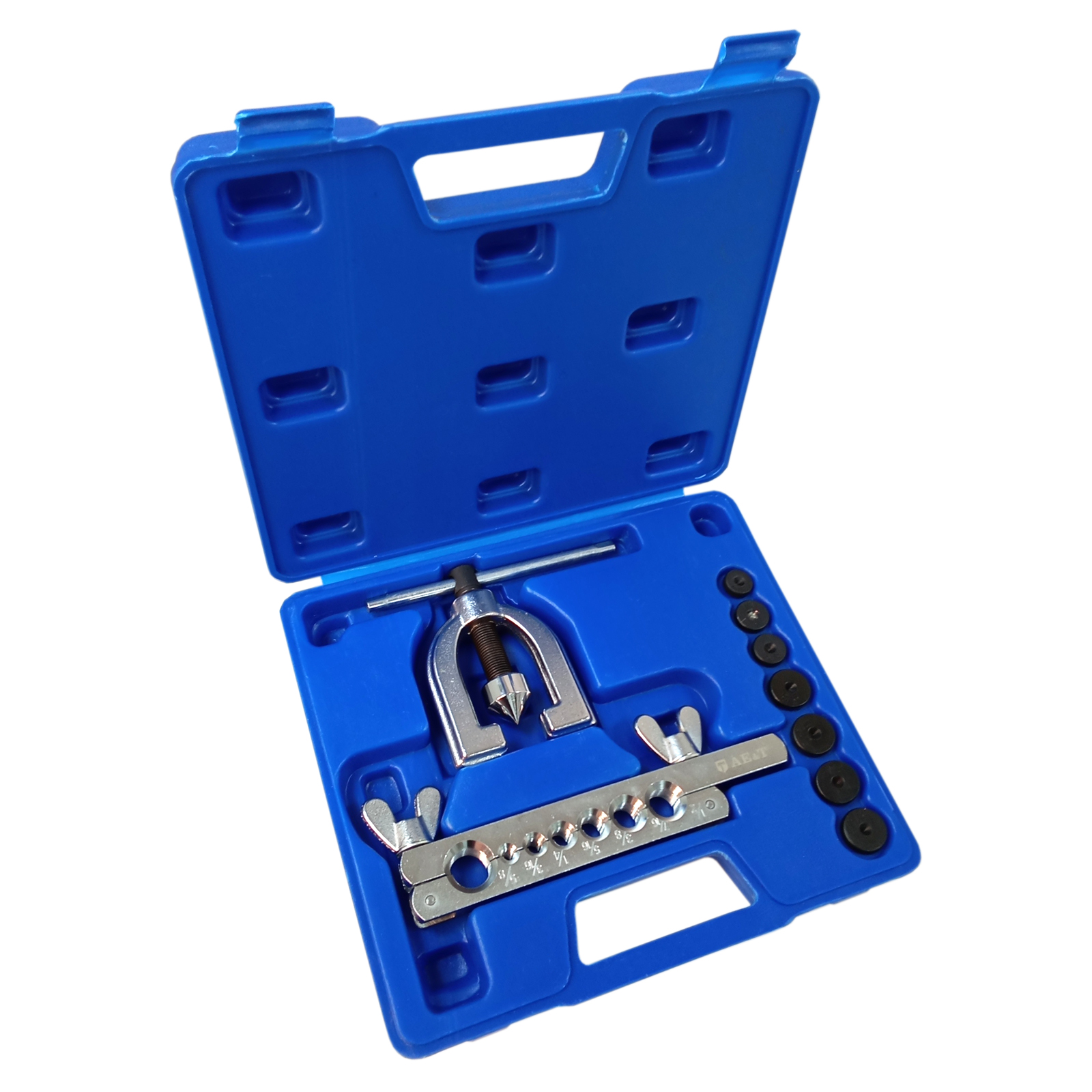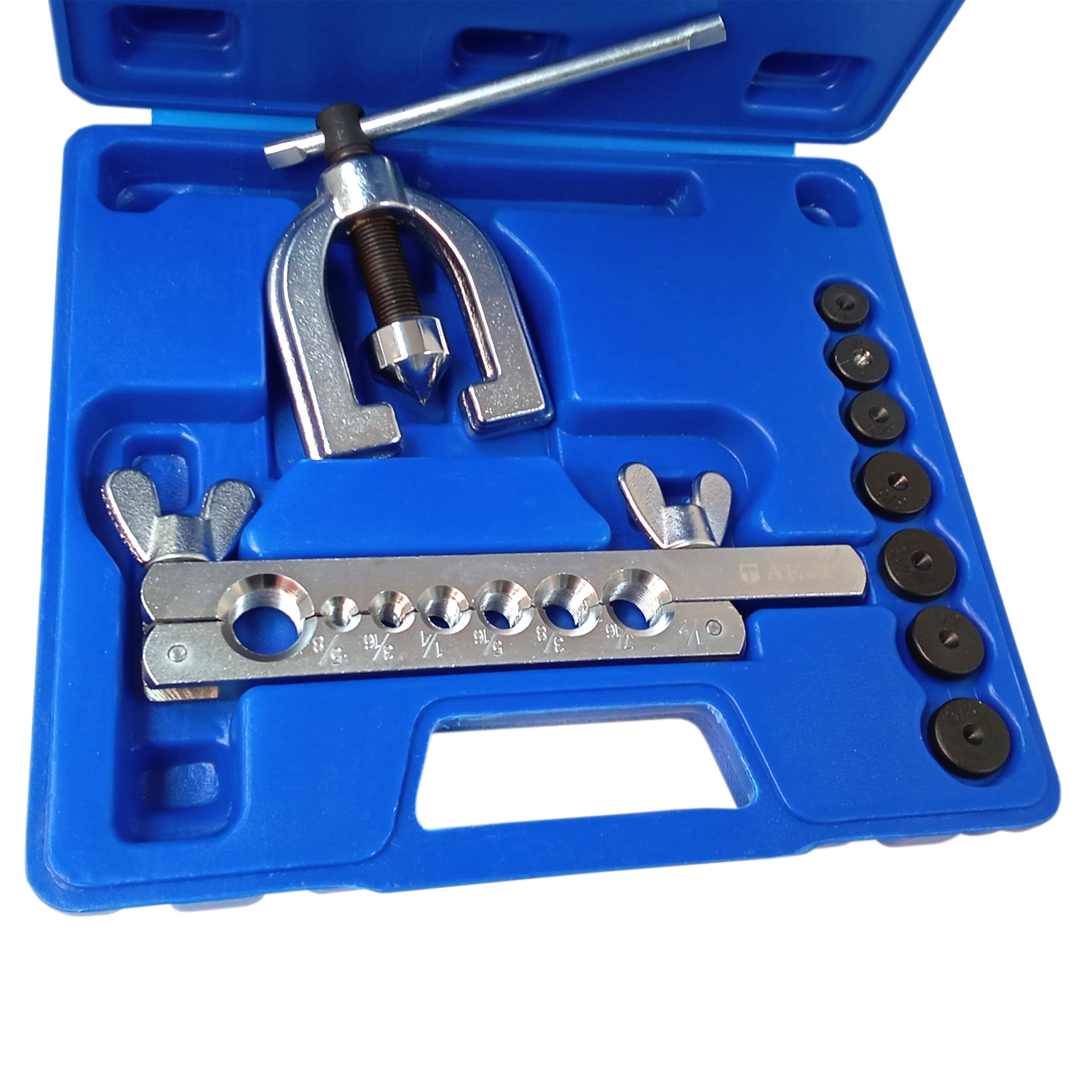 Инструмент для развальцовки труб ТА-М1071 – это набор из 10 предметов для обработки окончаний медных и латунных трубок различных систем автомобиля.