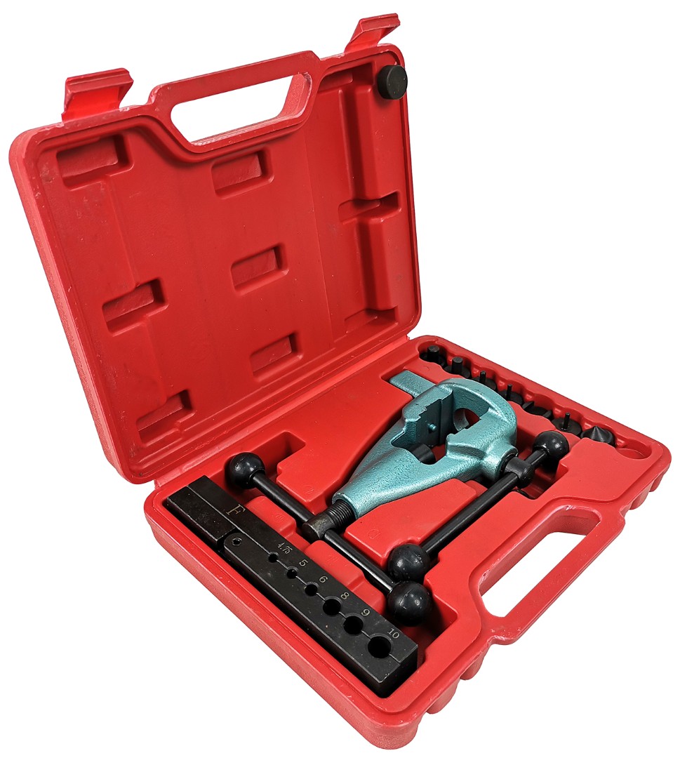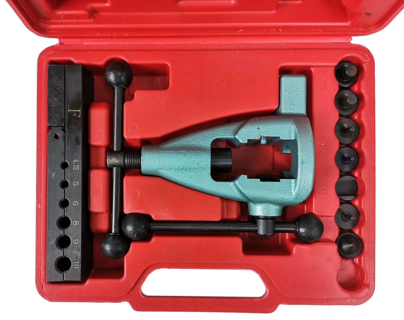 Инструмент для развальцовки труб ТА-М1081 это набор профессиональных приспособлений для изгибания медных и латунных трубок. Позволяет обжимать трубки различных систем: охлаждения, кондиционирования, водопроводные и газовые.