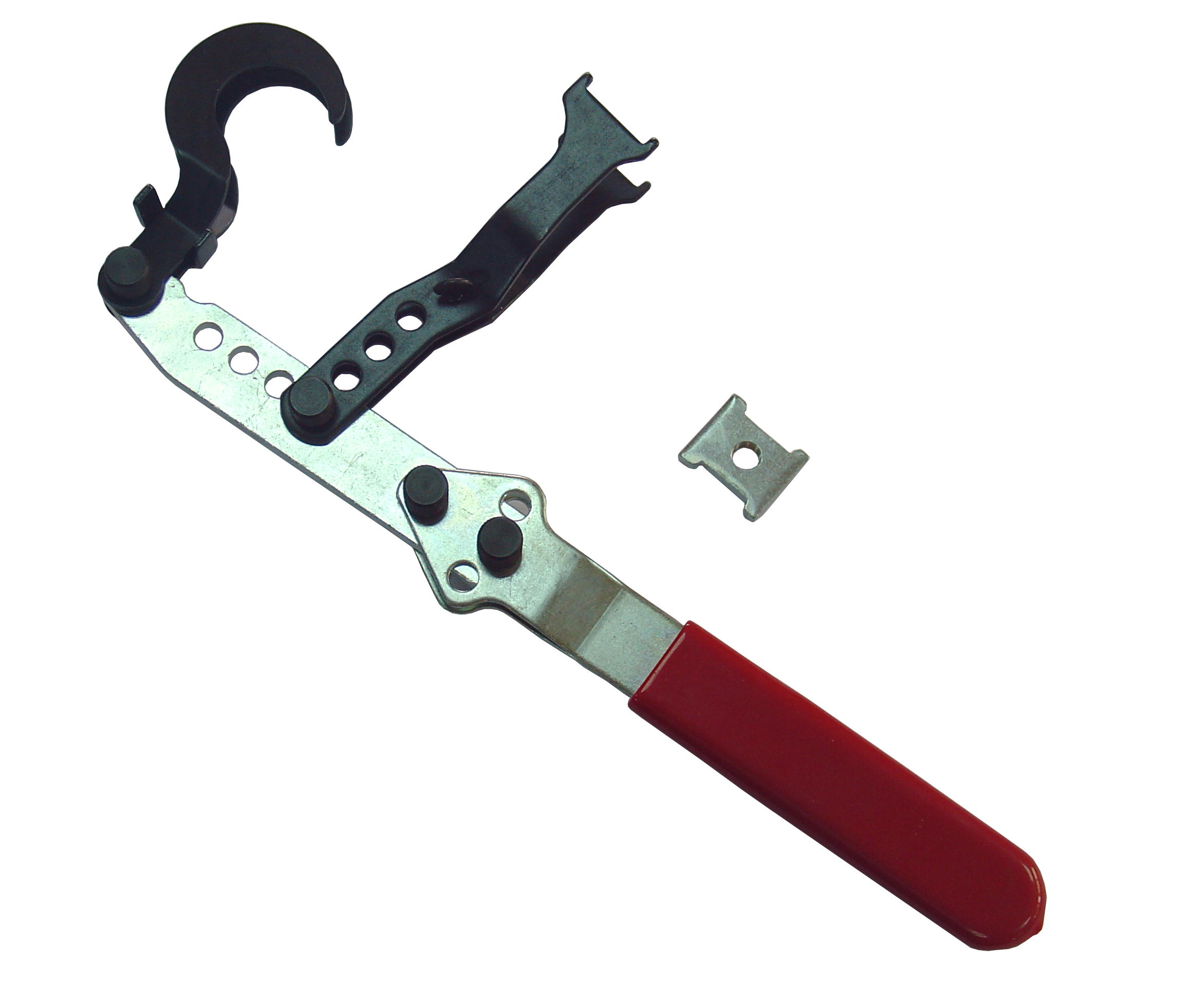 KA-5001 Инструмент для сжатия пружины клапана (рассухариватель). Предназначен для сжатия пружин впускных и выпускных клапанов. Подходит для использования в большинстве отечественных и зарубежных двигателях Может использоваться как на снятой головке блока цилиндров, так и на недемонтированной ГБЦ. Универсален благодаря нескольким отверстиям для точного позиционирования инструмента. Комплект набора: Рассухариватель 1 шт.