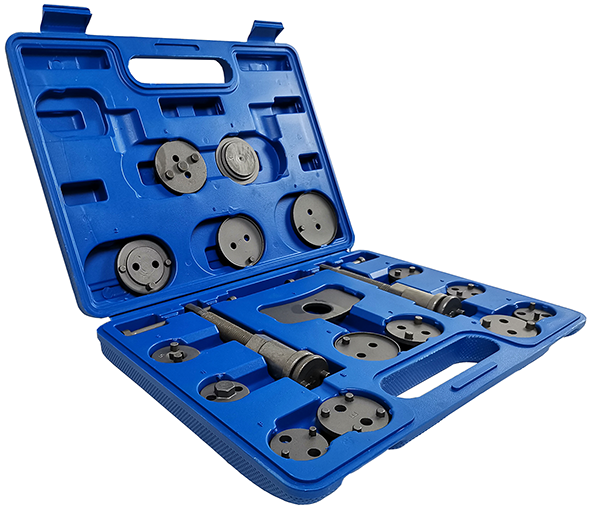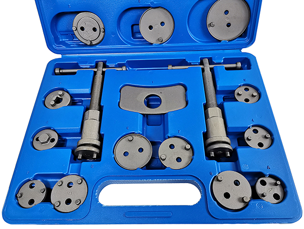 Инструмент сведения тормозных цилиндров TA-B1009 это набор из 18 предметов, предназначенный для упрощения обслуживания тормозной системы автомашин практически любых типов и моделей.
