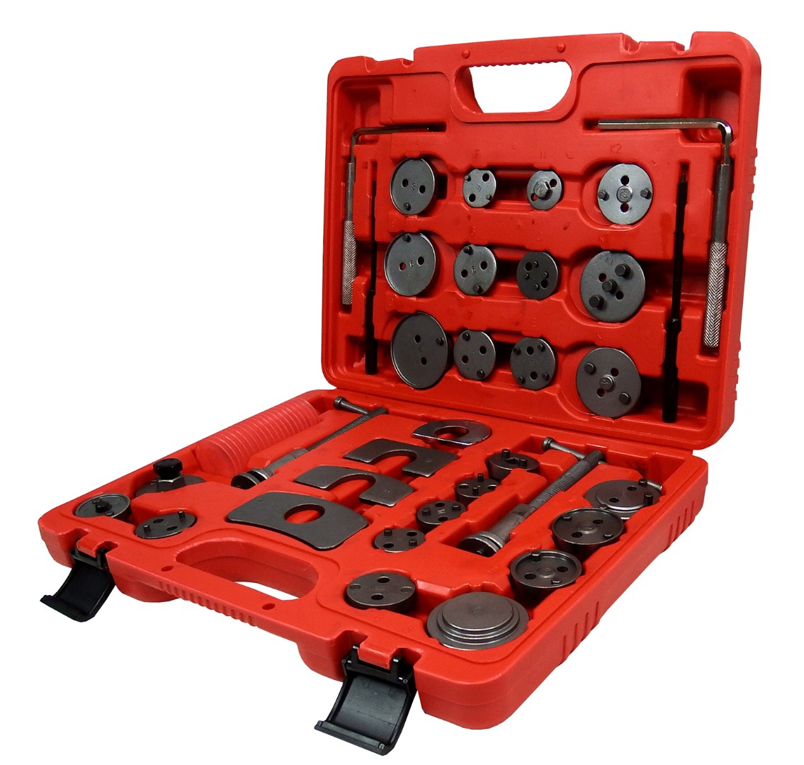 Инструмент сведения тормозных цилиндров TA-B1015 это комплект из 35 инструментов для утапливания поршня в тормозной цилиндр во время замены тормозных колодок, исключающий риск повреждения деталей системы.
