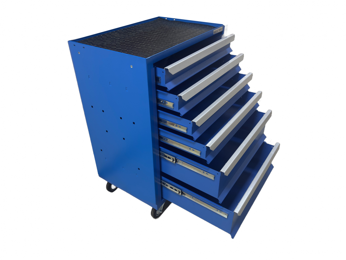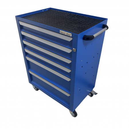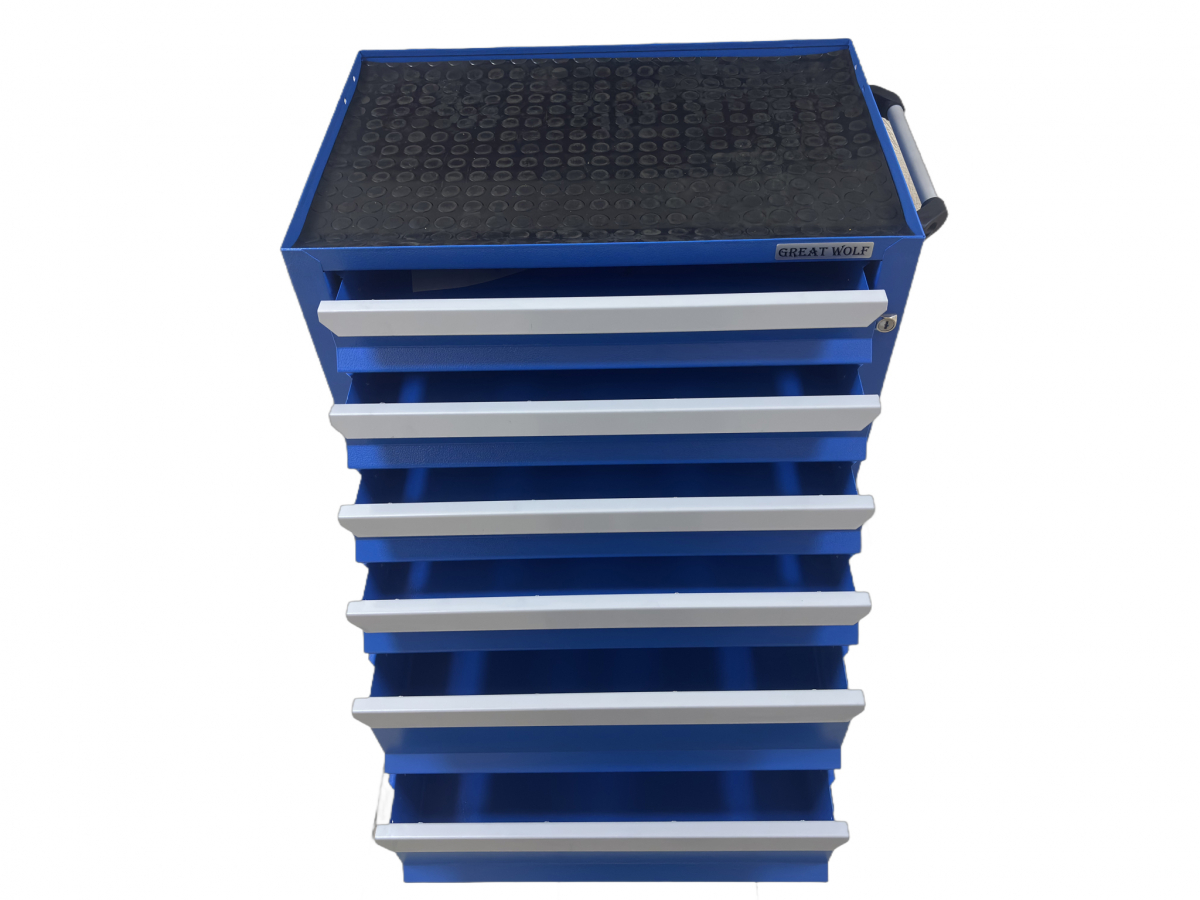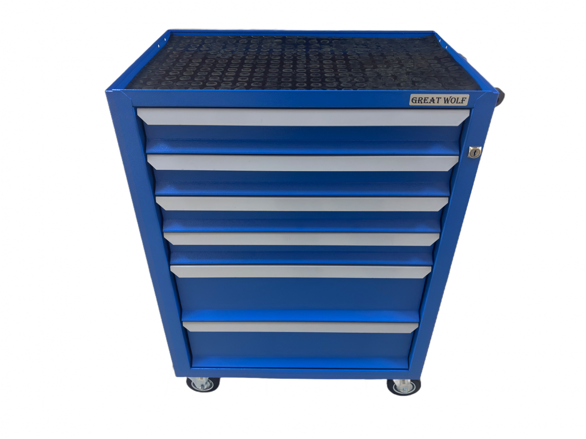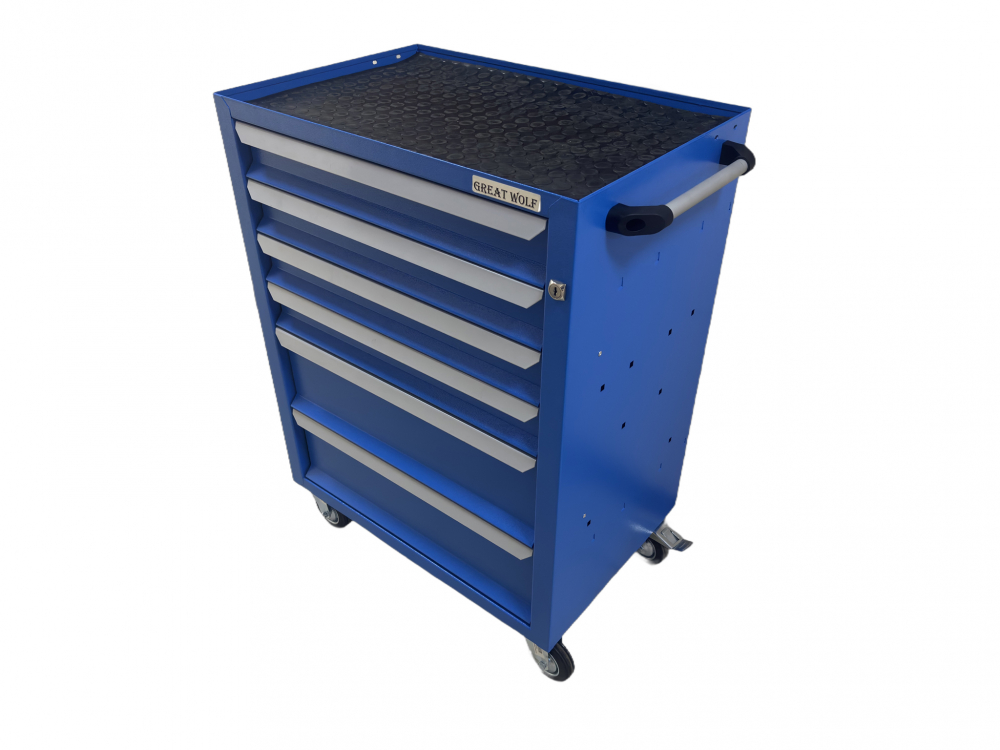 Инструментальная тележка Great Wolf GWT-K6B предназначена для удобного хранения и транспортировки инструмента по ремонтной зоне. Увеличенные колеса с блокирующим механизмом надежно фиксируют тележку на месте. Тележка закрывается на ключ. 2 нижних ящика глубиной 155мм и 4 ящика глубиной 75мм позволяют хранить как ложементы, так и крупногабаритный инструмент.