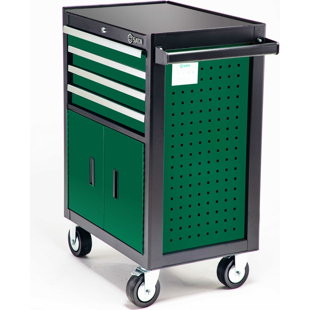 Инструментальная тележка Sata 692x488x840 мм, 4 выдвижных лотка, 1 ящик, отдельно доп. перфорир. панель для инструментов 95125