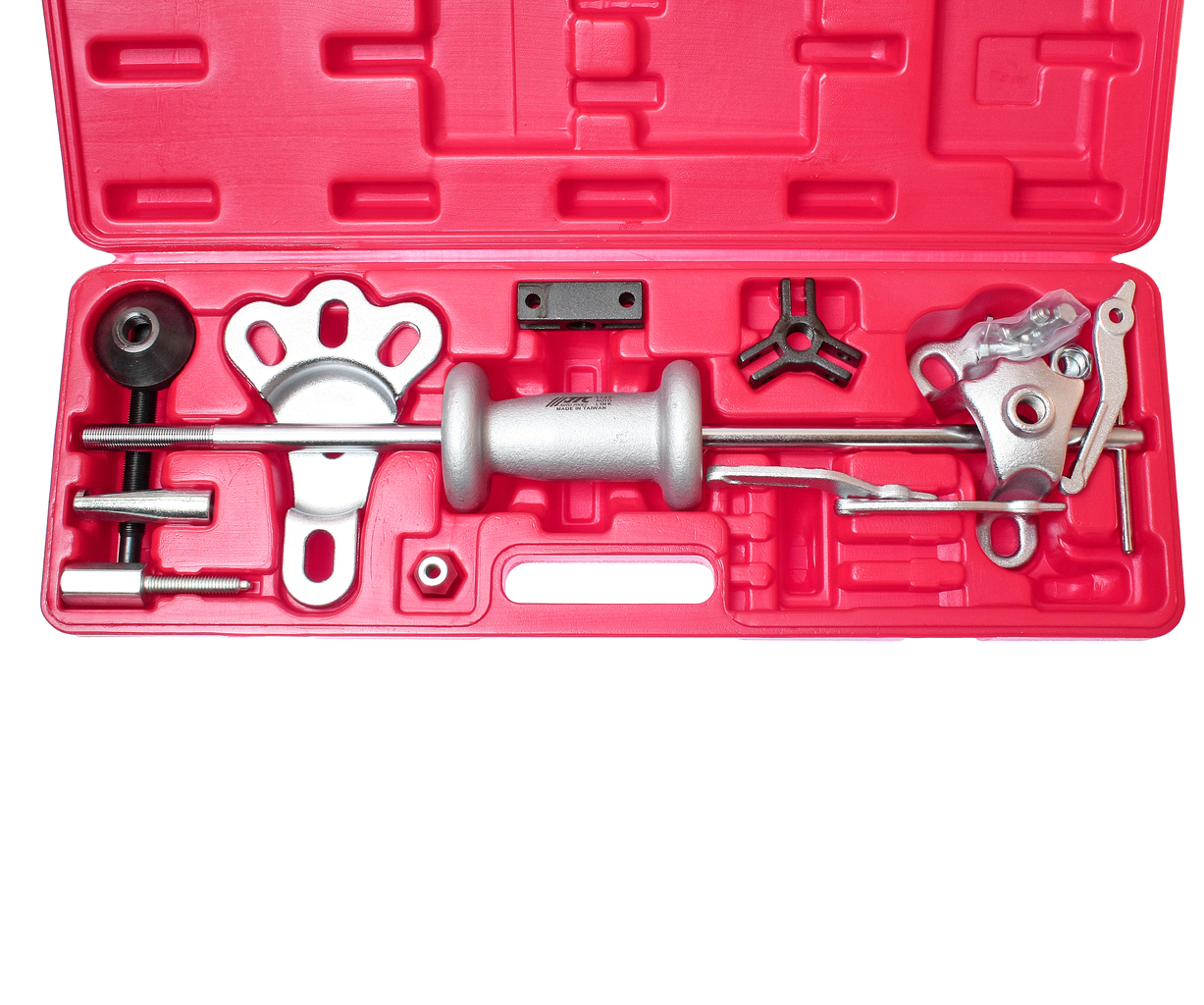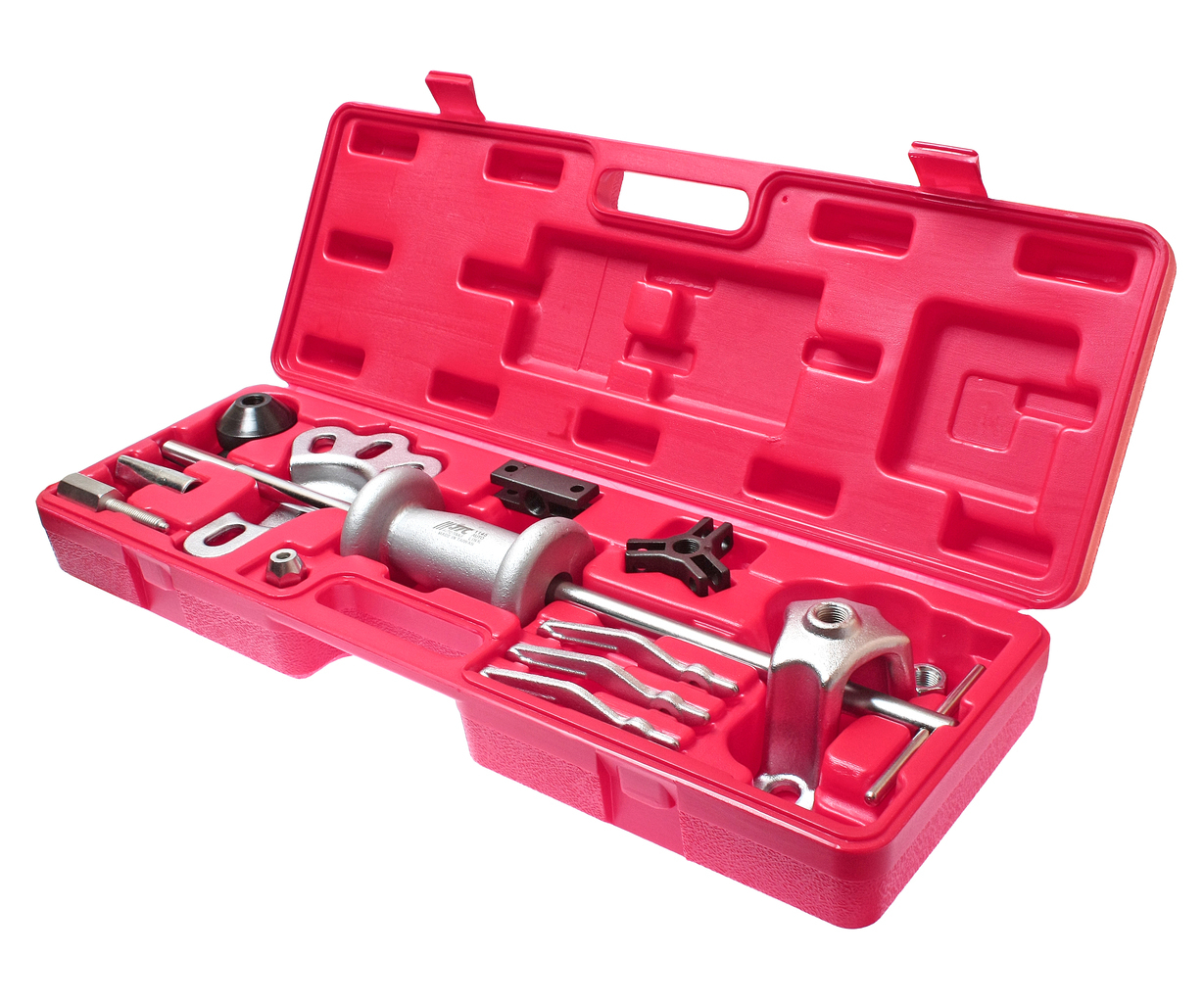 Универсальный инерционный съемник может быть использован для демонтажа полуоси, ступицы и барабанов, подшипников, шестерней, втулок, а также в работах жестянщика.