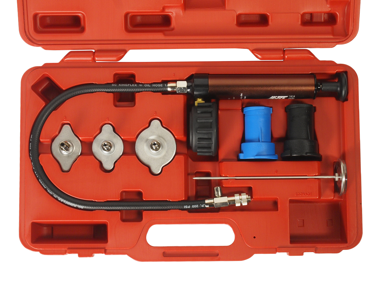 Предназначен для проверки герметичности системы охлаждения двигателя. Применяется: Mercedes, GM (Buick), Jeep, Peugeot, Subaru, Chrysler, Acura, GM (Nova,Spectrum, Sprint), Mitsubishi, Nissan, Mazda, Toyota, Infiniti, Geo, Suzuki, Isuzu, Ford, Honda. Габаритные размеры: -/-/- мм. (Д/Ш/В)
