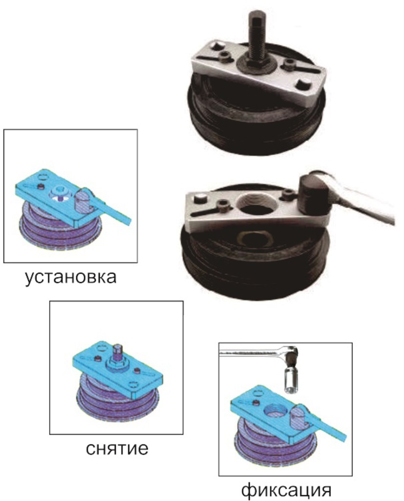Предназначен для удержания шкива от проворачивания во время откручивания/вкручивания центрального болта.