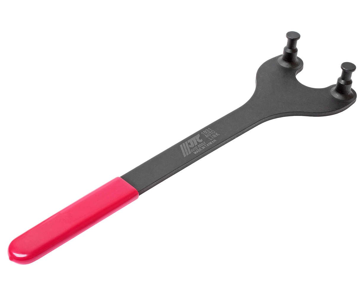 Фиксатор имеет упорные штифты с канавками (бороздками), которые предназначены для фиксации шкива распределительного вала в неподвижном положении при откручивании центрального болта вала.