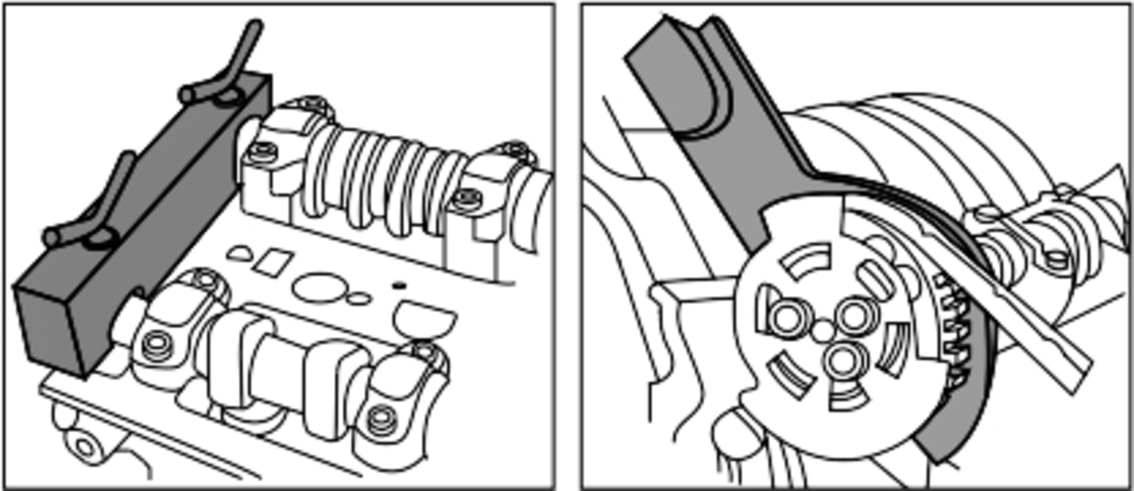 Данный комплект фиксаторов позволяет проводить корректную установку фаз ГРМ двигателя при замене приводного ремня.