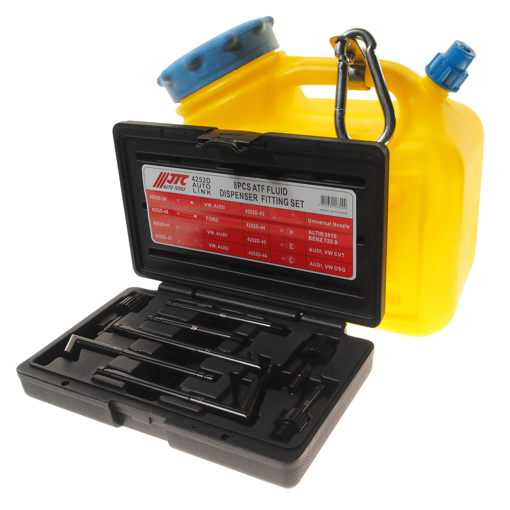 Для заправки: заполните емкость маслом, подвесьте выше уровня АКПП, подсоедините шланг к АКПП.