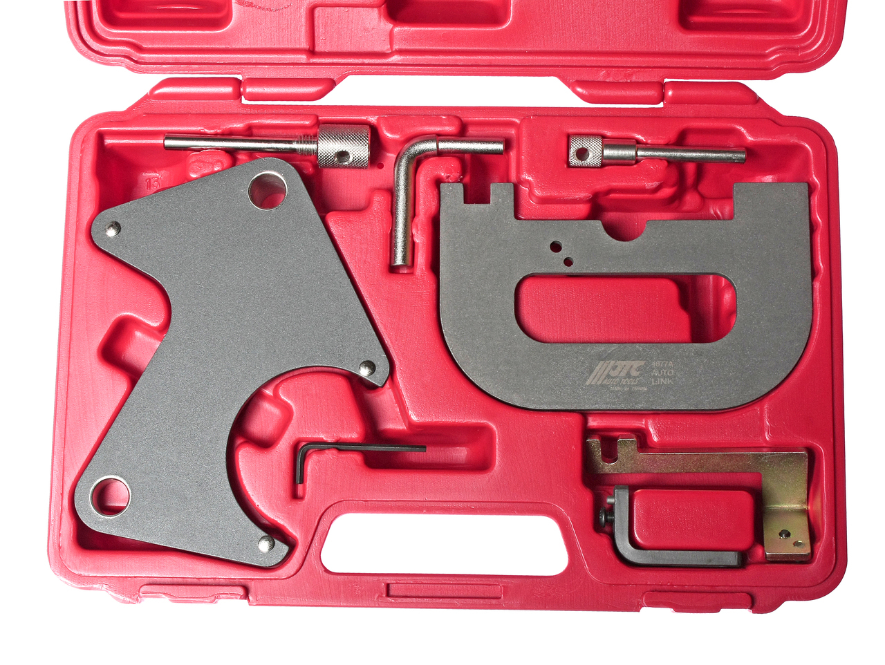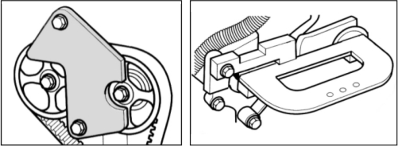 Приспособление для регулировки шкива распределительного вала предназначено для фиксации шкивов во время замены приводного ремня и последующей корректной установки фаз ГРМ.