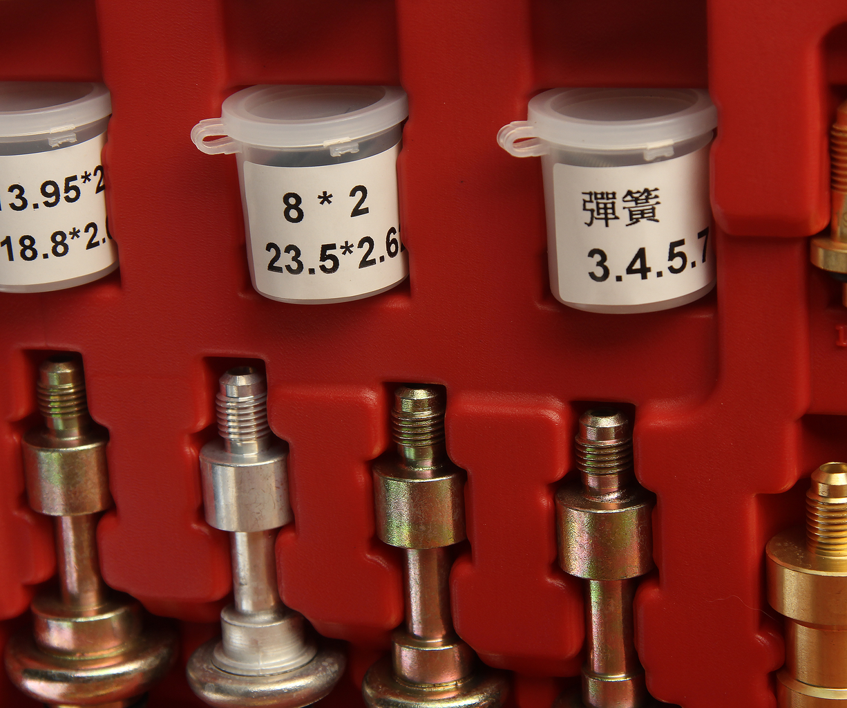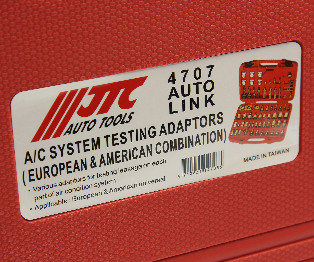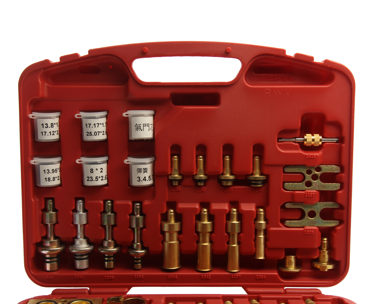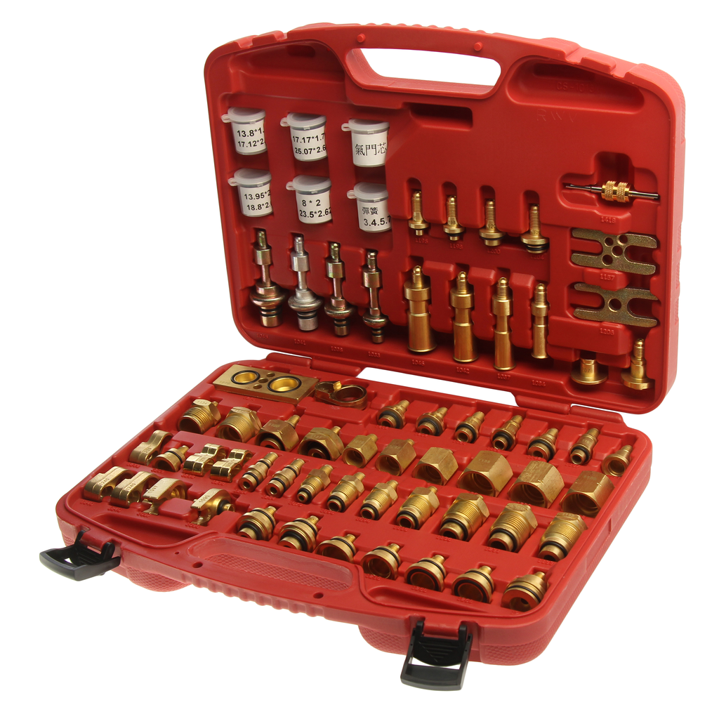 В набор входят различные адаптеры для тестирования системы кондиционирования на предмет утечек.