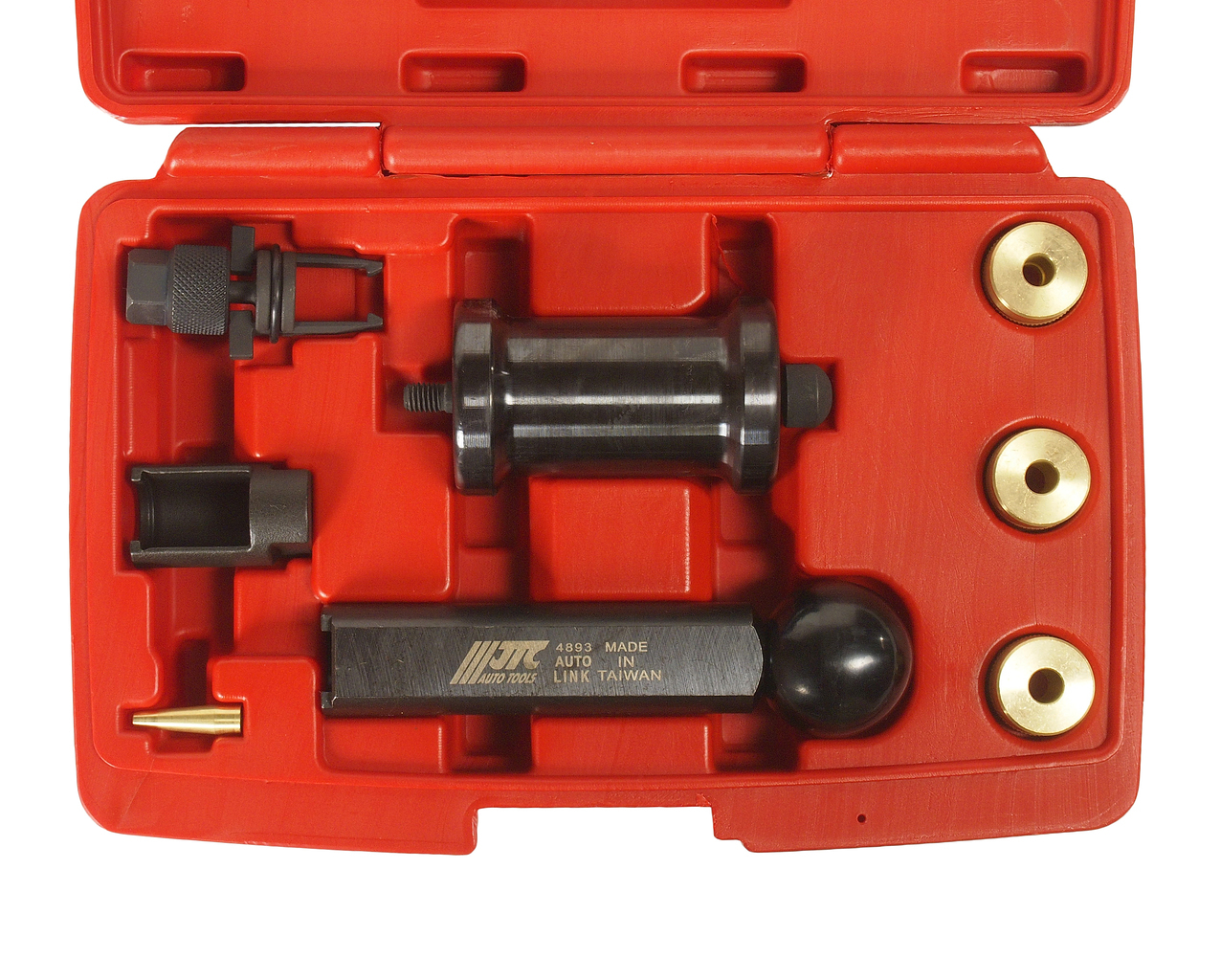 Используйте U-образный захват или захват с двумя крюками для фиксации форсунки и снятия ее с помощью ударного съемника.