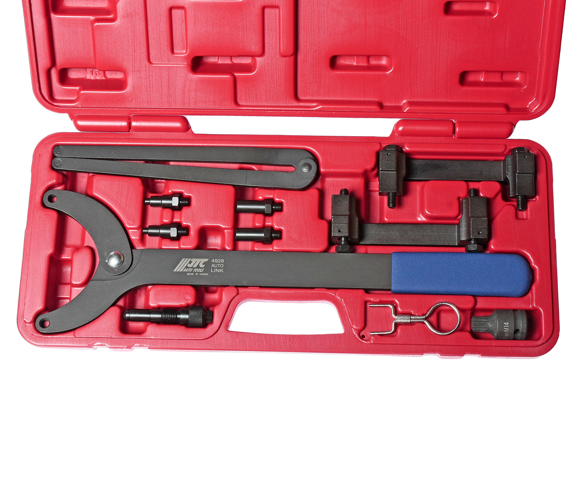 Специальный набор инструментов применяется для фиксации распредвала и установки фаз ГРМ.