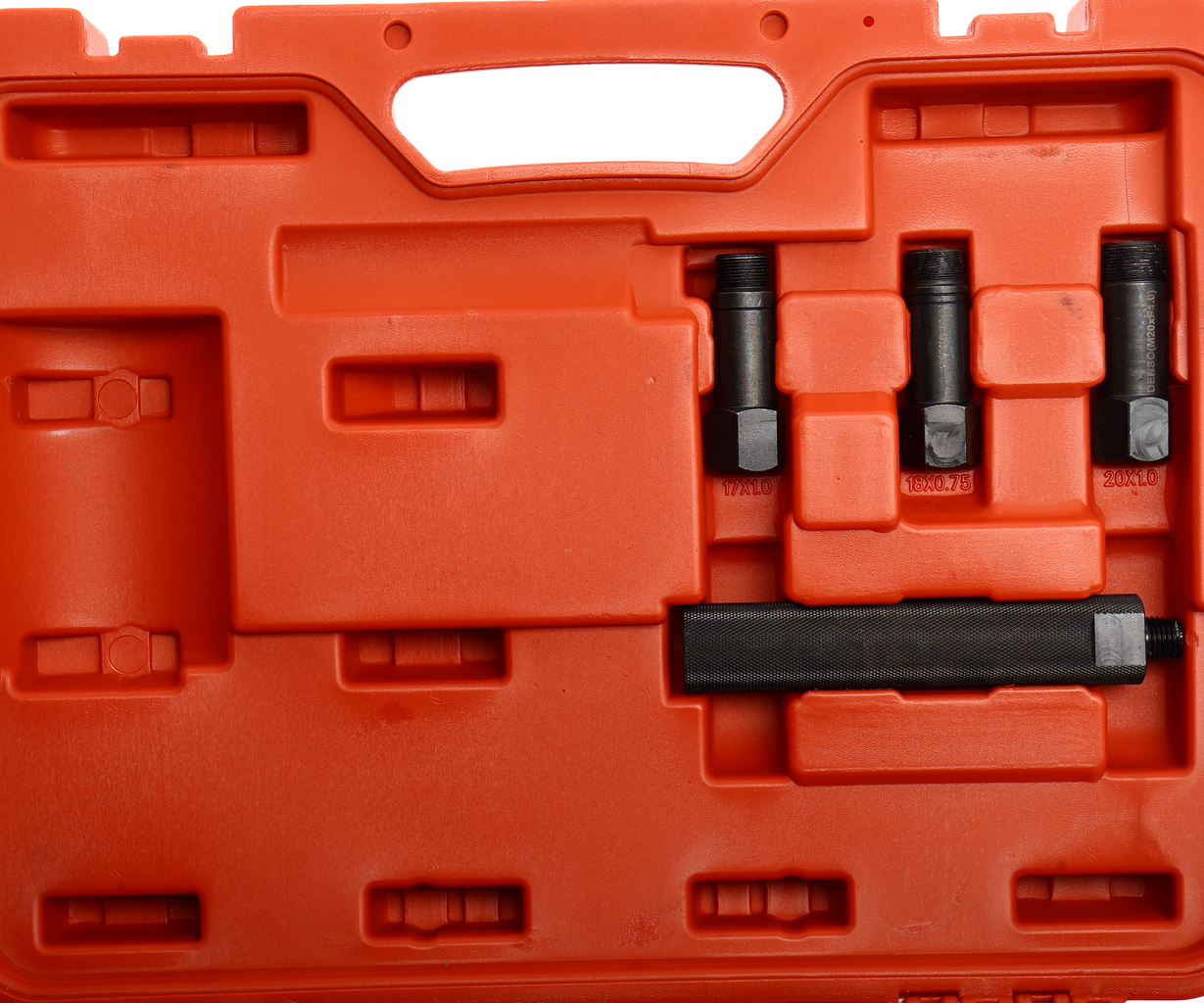 Адаптеры: В комплект входят сменные адаптеры под разные размеры резьбы форсунок: M8, M10, M12, M14, M16, M17, M18, M20, M22, M25, M26, M27, M29, M31 (позволяет работать с большинством распространенных моделей дизельных форсунок).