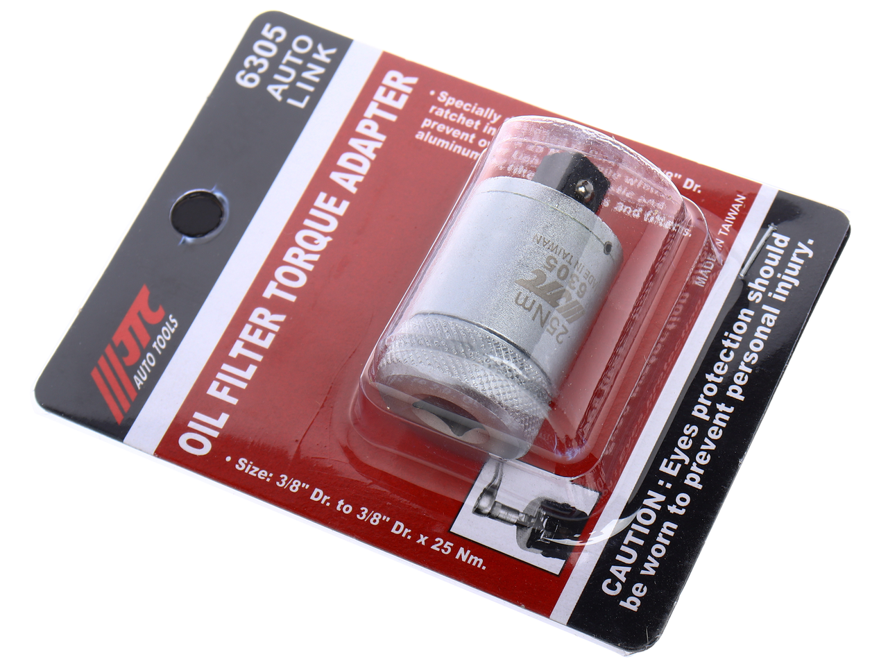 Разработан для изменения обычного храпового механизма на 3/8" в динамометрический ключ с крутящим моментом 25 Н·м, предотвращает чрезмерное затягивание пластиковых и алюминиевых масляных фильтров и фильтров с фиксированным усилием затяжки