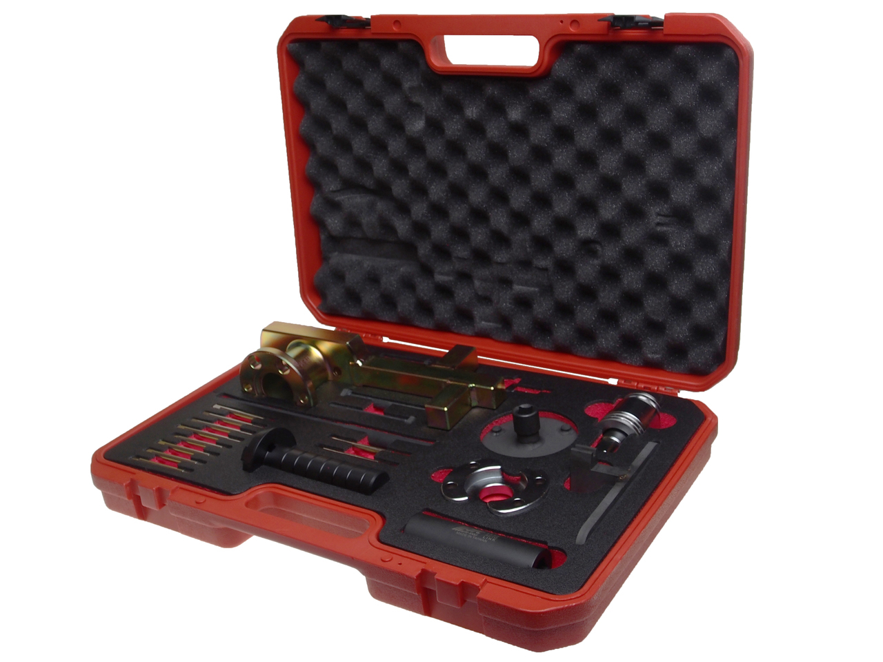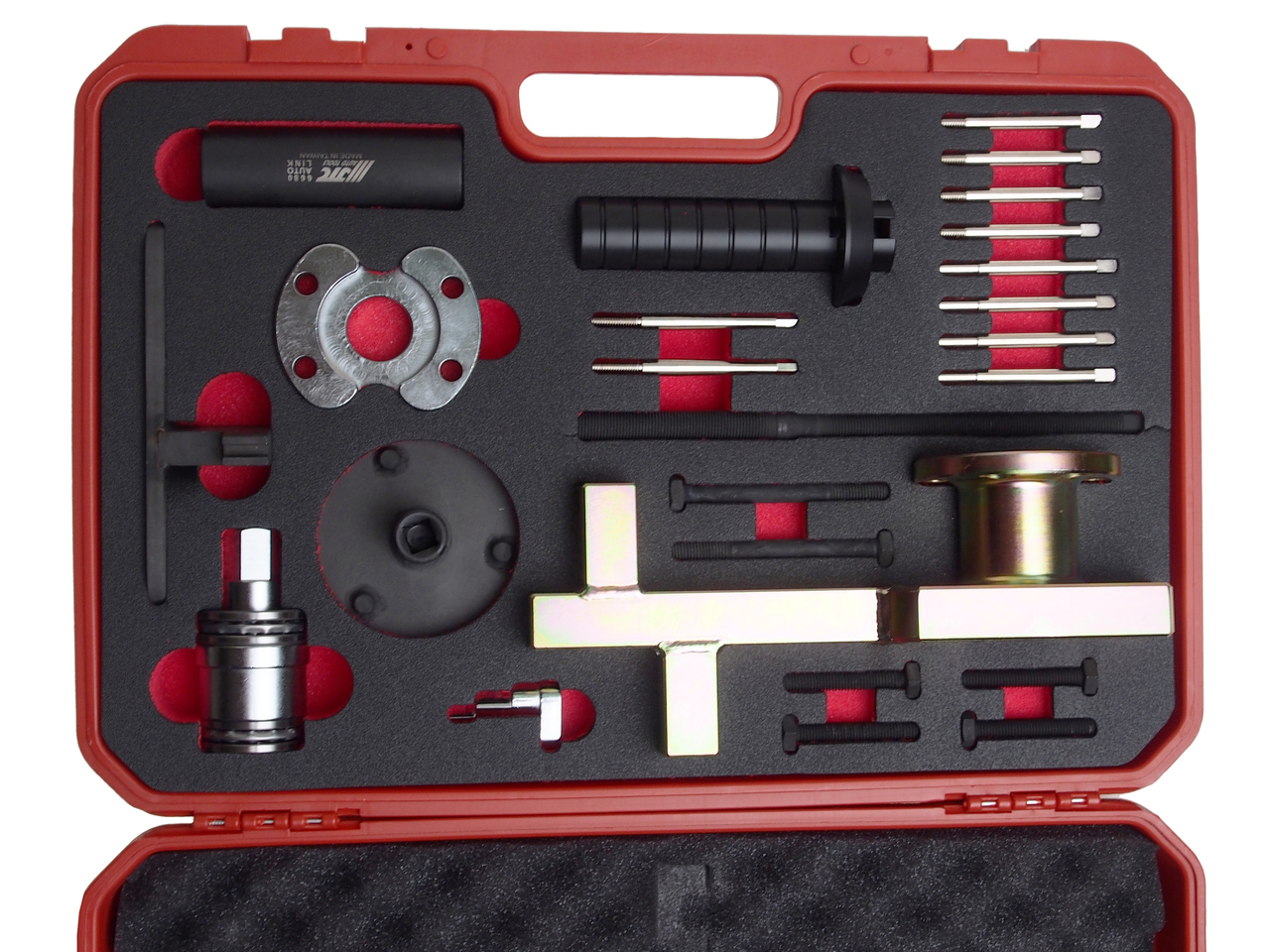 Комбинированный набор предназначен для установки и демонтажа заслонки коленвала, установки сальника коленвала, направления компрессора, фиксации маховика, выравнивания ДКТ и топливной трубки.
