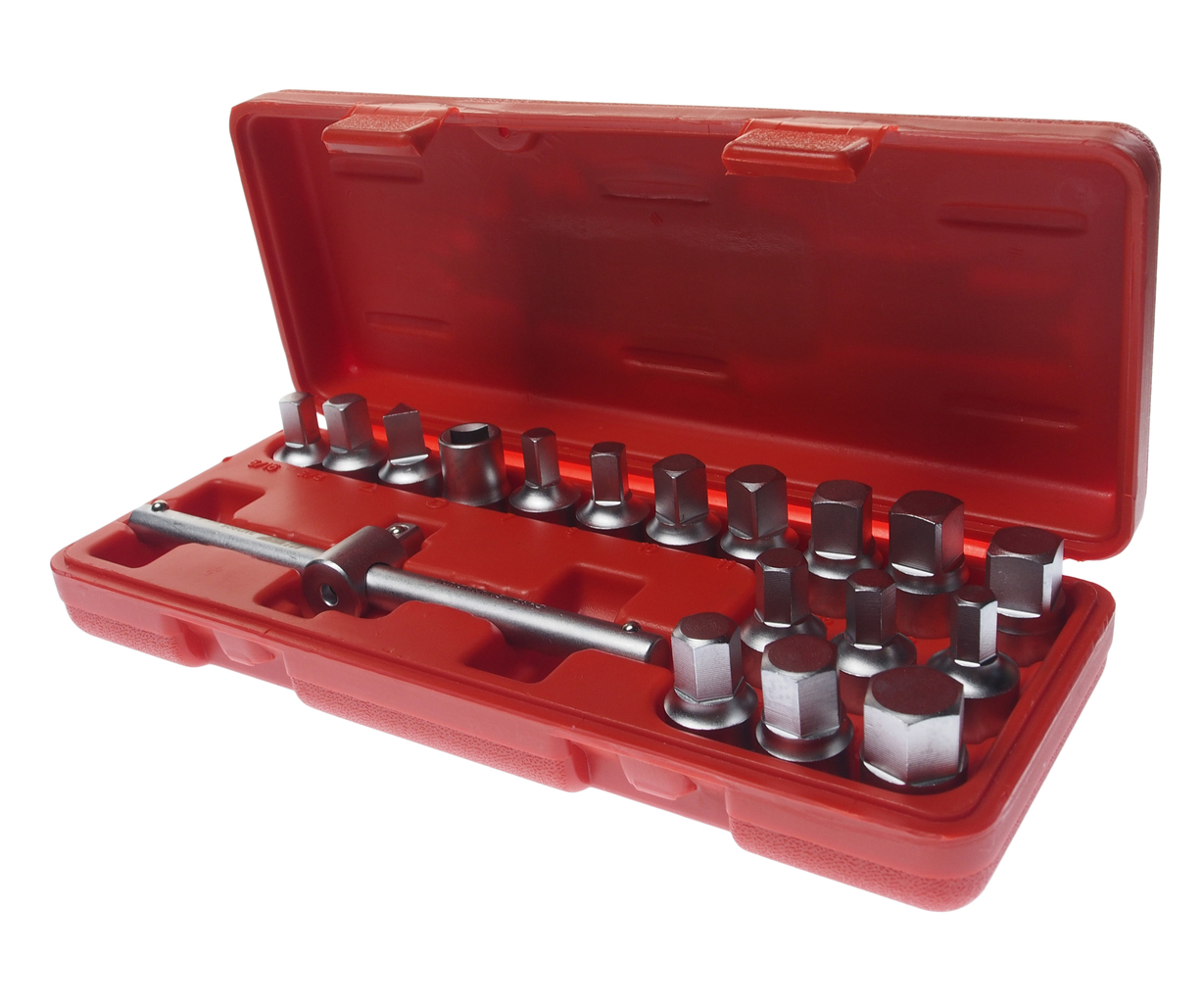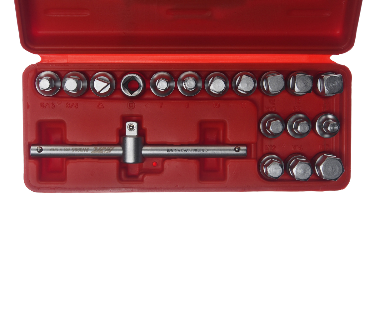 В комплекте: головки (17 шт.) 5/16", 3/8", квадрат, треугольник, 7, 8, 10, 11, H10, H9, H8, H12, H14, H17.