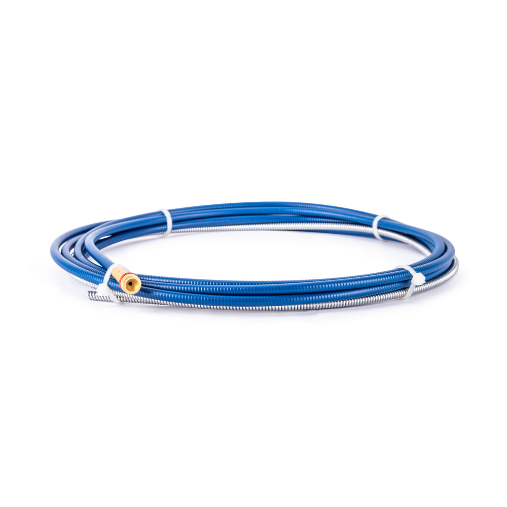 Направляющий канал производства Foxweld для подачи сварочной проволоки от источника питания MIG/MAG до сопла горелки выполнен из стали и покрыт пластиком синего цвета.