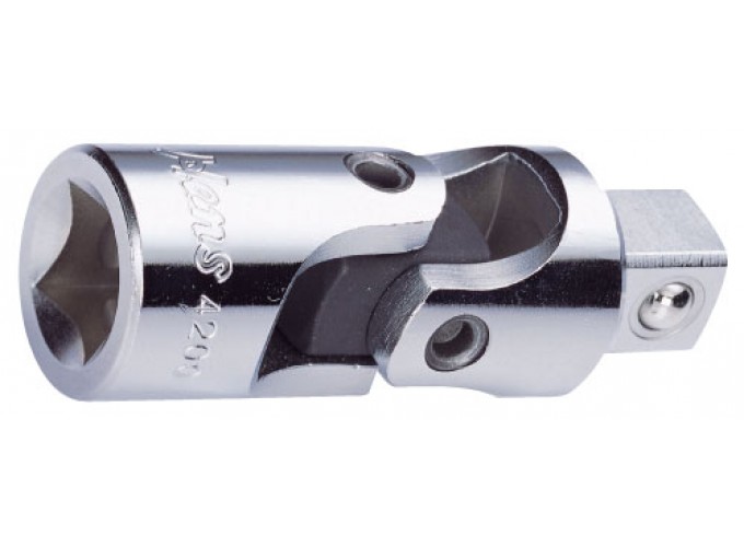 Карданный шарнир применяется для работы с болтовыми соединениями расположенными в трудно доступных местах. Отличительной особенность карданного шарнира является клепанная конструкция шарнира. В отличи от болтового соединения механизма, клепанное не раскручивается при интенсивной эксплуатации, к тому же, клепка изготовлена их того же материала что и все части шарнирного кардана, из хромо-ванадиевой стали что в свою очередь позволяет передавать большие крутящие моменты. Карданный шарнир изготовлен из высококачественной хромо-ванадиевой стали. Имеет твердость в пределах 45-48 HRC Для надежной фиксации инструмента, присоединительный квадрат снабжен шариковым фиксатором. Весь инструмент компании HANS соответствует требованиям стандартов качества ГОСТ и DIN, а по некоторым параметрам их превосходит. ВНИМАНИЕ! Данный вид инструмента не предназначен для срыва прикипевшего крепежа.