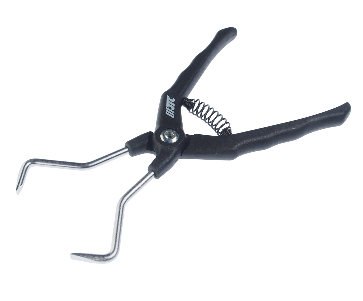 V-образная форма зажима позволяет использование клещей в узком пространстве.