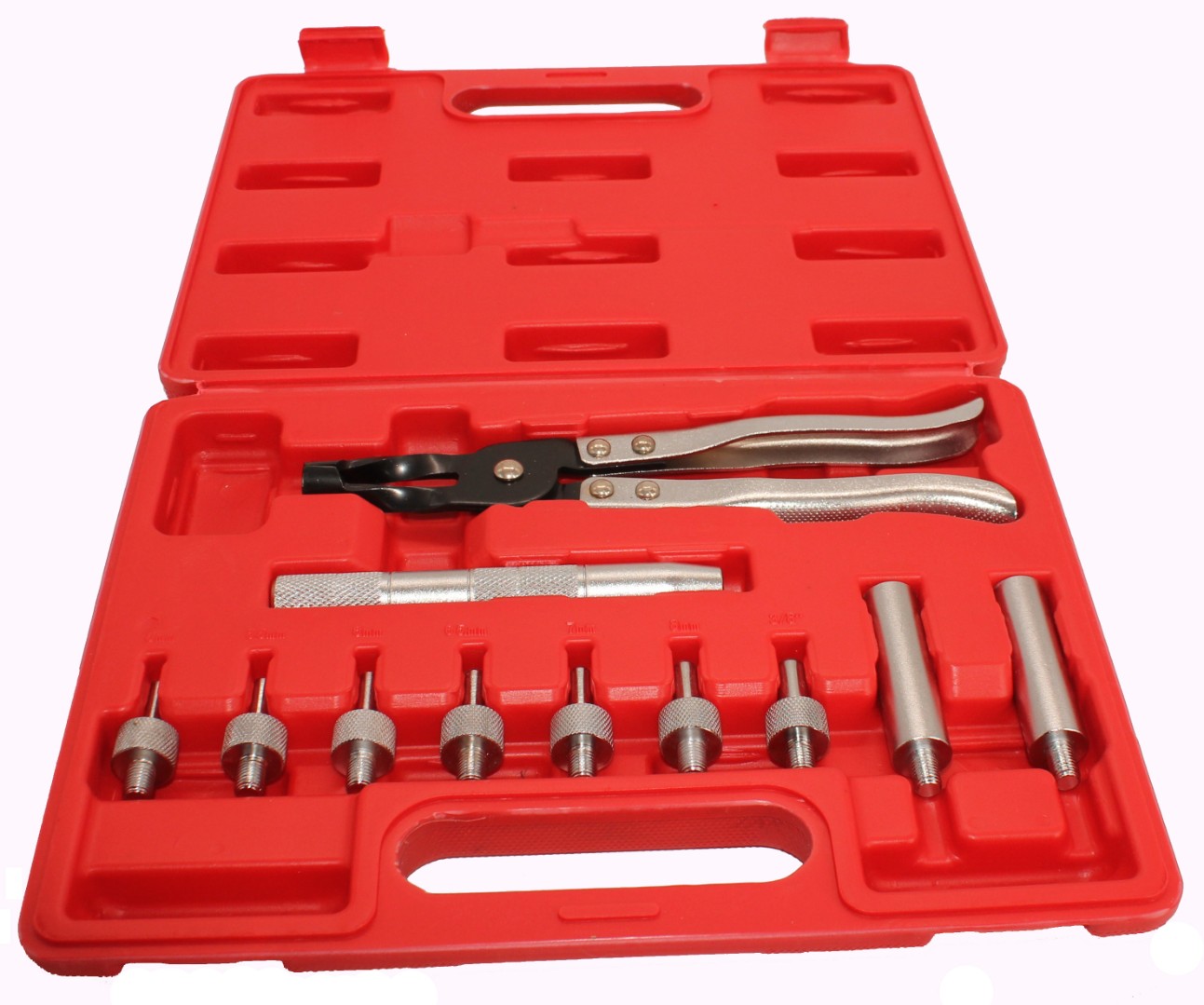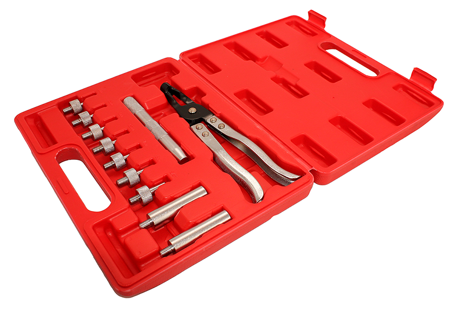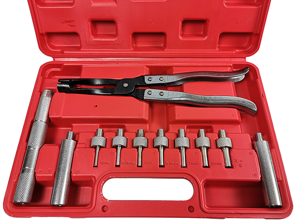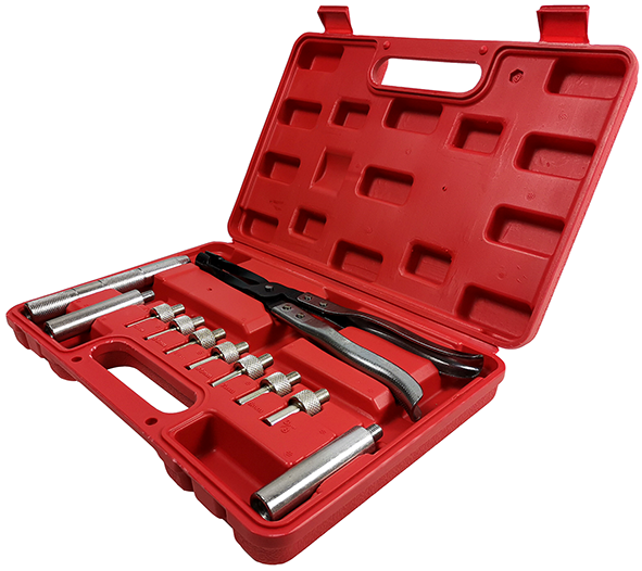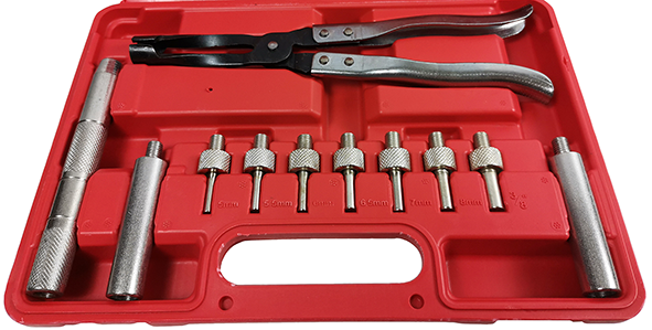 Клещи TA-A1010 предназначаются для удаления и установки клапанных уплотнений двигателя. Обязательно поставляются с набором: приводная ручка, семь оправок для работы с диаметрами 5, 5.5, 6, 6.5, 7, 8 mm и 3/8 дюйма, а также 2 шт для глубоких уплотнений 10.8-14.8 mm.