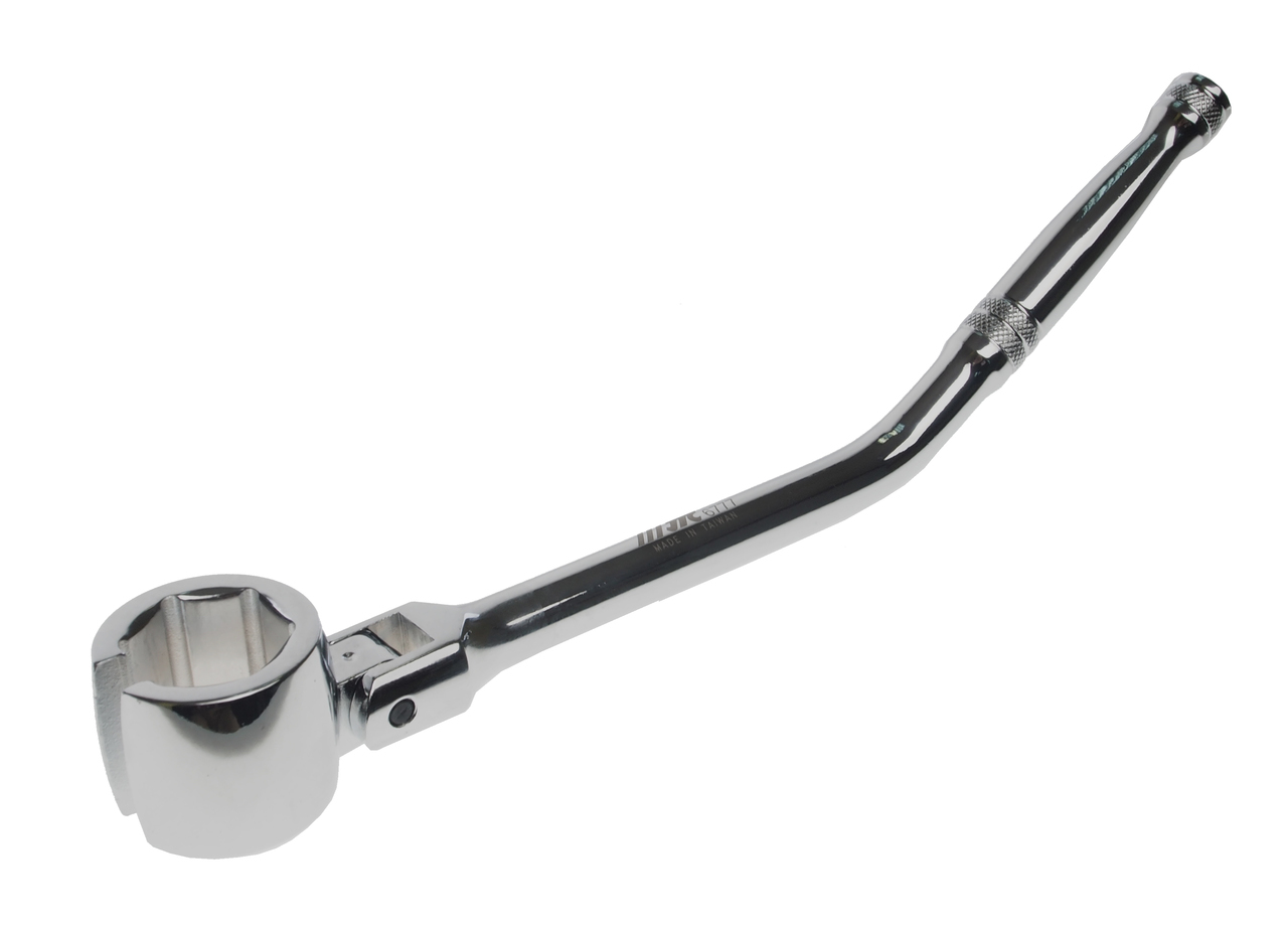 Ключ имеет подвижную головку и может применятся в труднодоступных местах.