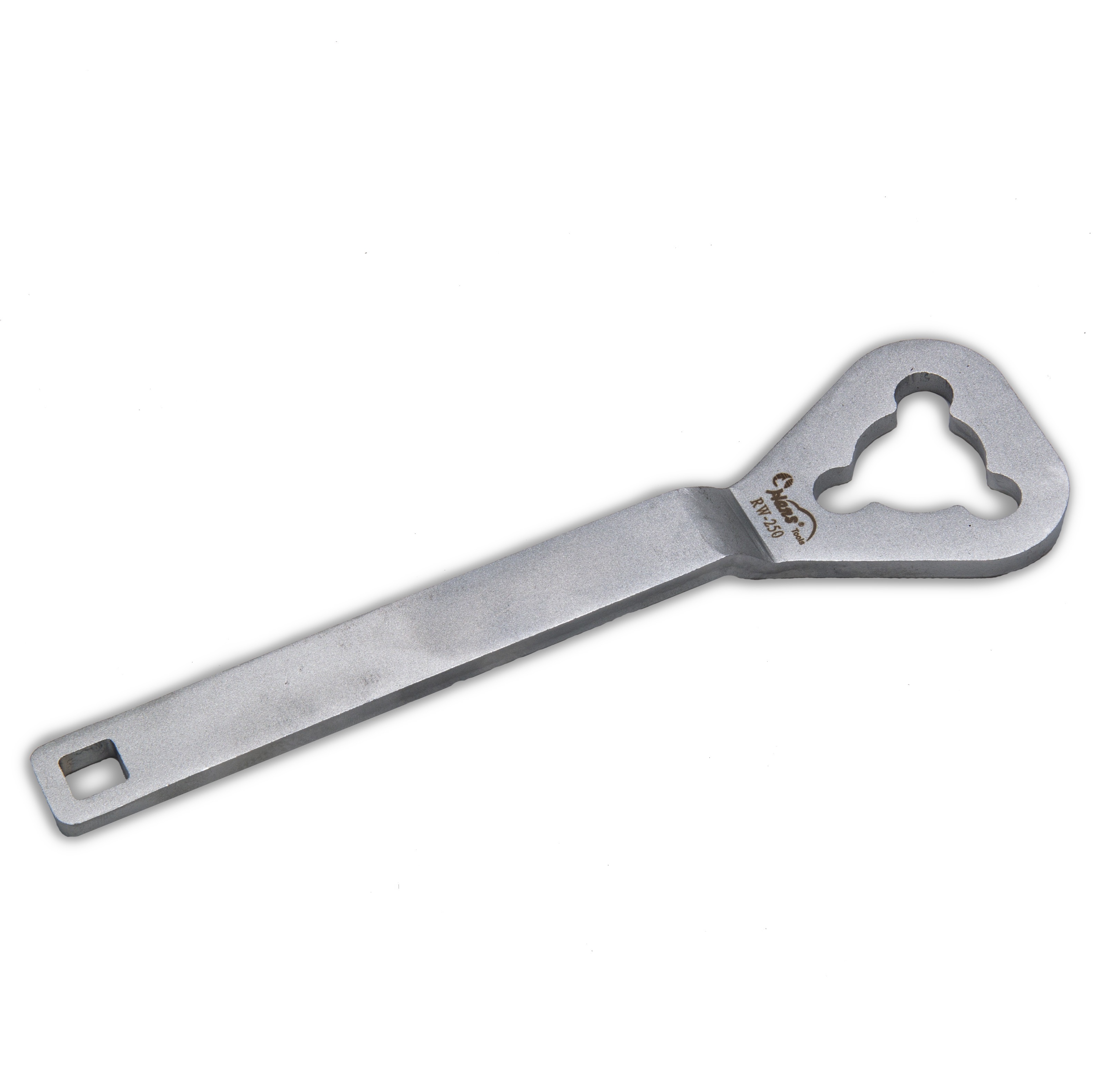 Ключ для фиксации шкивов помп VW-Audi. OEM номер 1590 Применяется для надежной фиксации шкифа водяного насоса В конструкции ключа предусмотрена возможность его применения с воротком или трещоткой 1/2" Длина: 250 мм Ширина: 80 мм