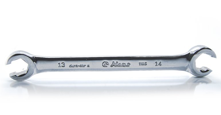 Разрезной ключ является специальной разновидностью ключей накидного типа и представляет собой конструкцию, состоящую из двух накидных профилей самых популярных или соседних размеров, имеющих специальный разрез. В первую очередь они необходимы для работы с гайками, трубопроводом пневматических и гидравлических магистралей, на которые невозможно надеть неразрезной накидной профиль. Из-за особенностей гаек такого типа применение рожкового профиля нежелательно, так как затяжка и отворачивание соединительной резьбы требует настолько большого усилия, что классический рожковый профиль может повредить крепеж. Благодаря применению хромванадиевой стали марки 6140, правильно проведенной закалке и увеличенной высоте профиля ключ способен выдерживать высокий крутящий момент. Ключ изготовлен по стандарту DIN, имеет трехслойное хромоникелевое покрытие, обеспечивающее повышенную стойкость к коррозии.