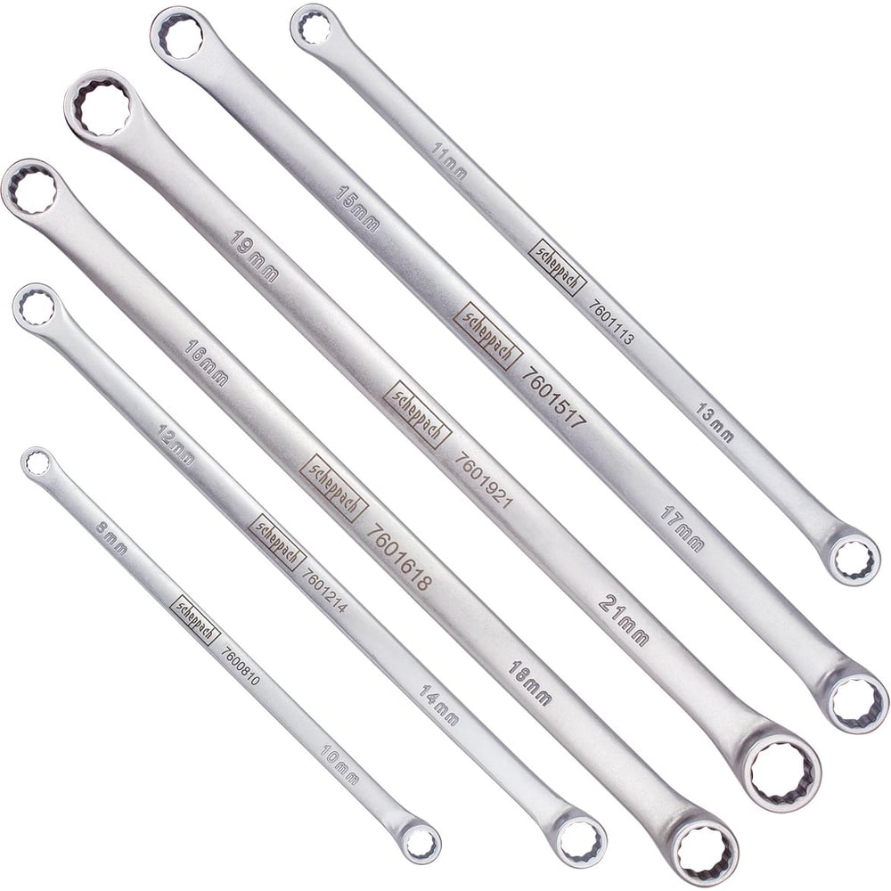 Ключи накидные Scheppach экстра длинные, набор 6 предметов (8x10, 11x13, 12x14, 15x17, 16x18, 19x21мм) Sch-50622(66142)