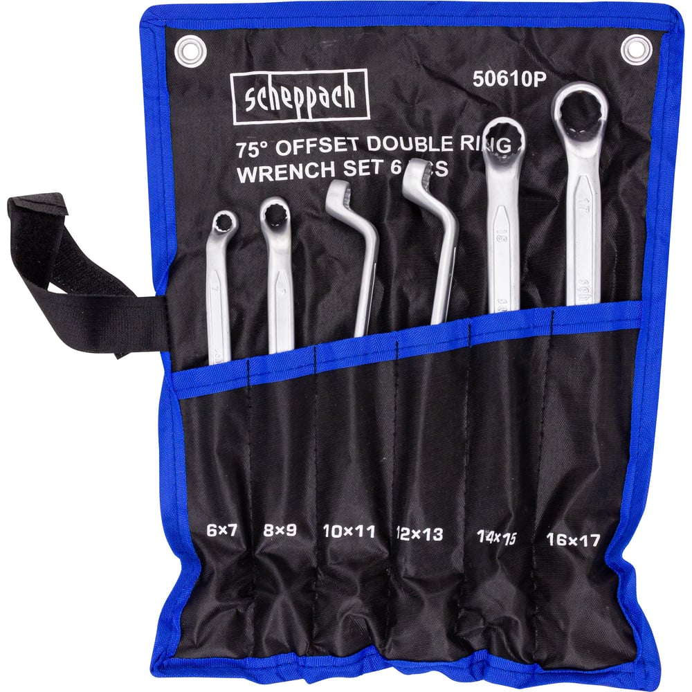 Ключи накидные Scheppach отогнутые на 75 град., набор 6 предметов (6х7, 8х9, 10х11, 12х13, 14х15, 16х17мм) Sch-50610P(63266)