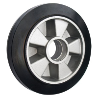 Колесо изготовлено из прочной резины черного цвета с алюминиевым ободом и отличается следующими характеристиками: